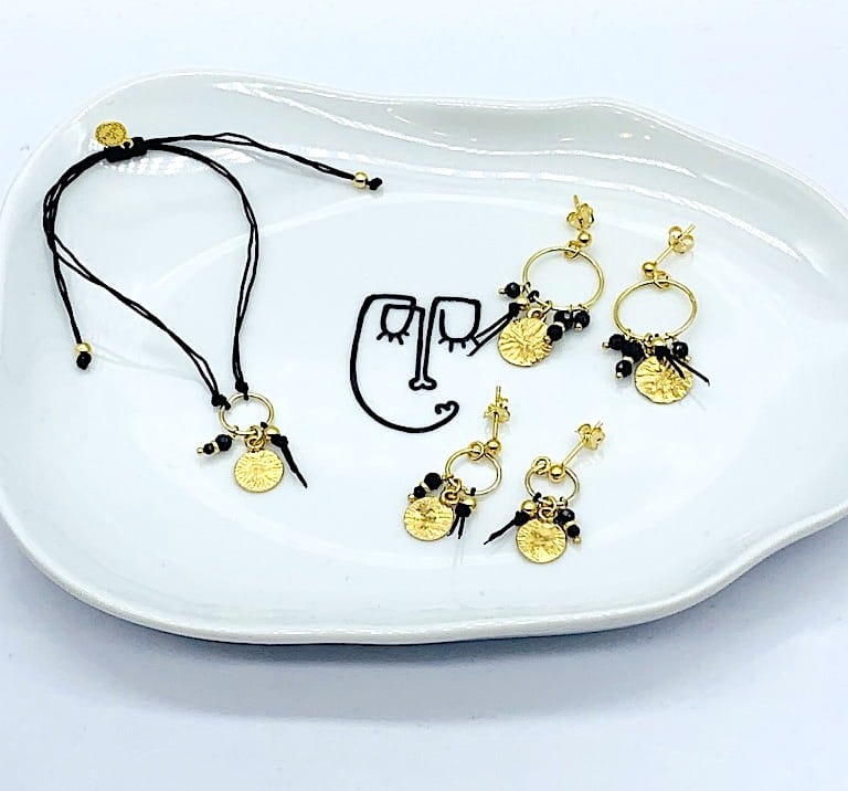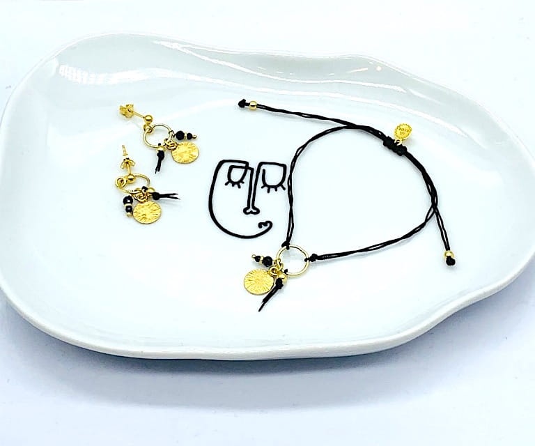 Bransoletka na nylonowej niteczce ze srebrnym kółeczkiem i podwiewszoną blaszką fakturowaną i kamieniami. Kółeczko średnica 10mm, blaszka średnia 8x10mm