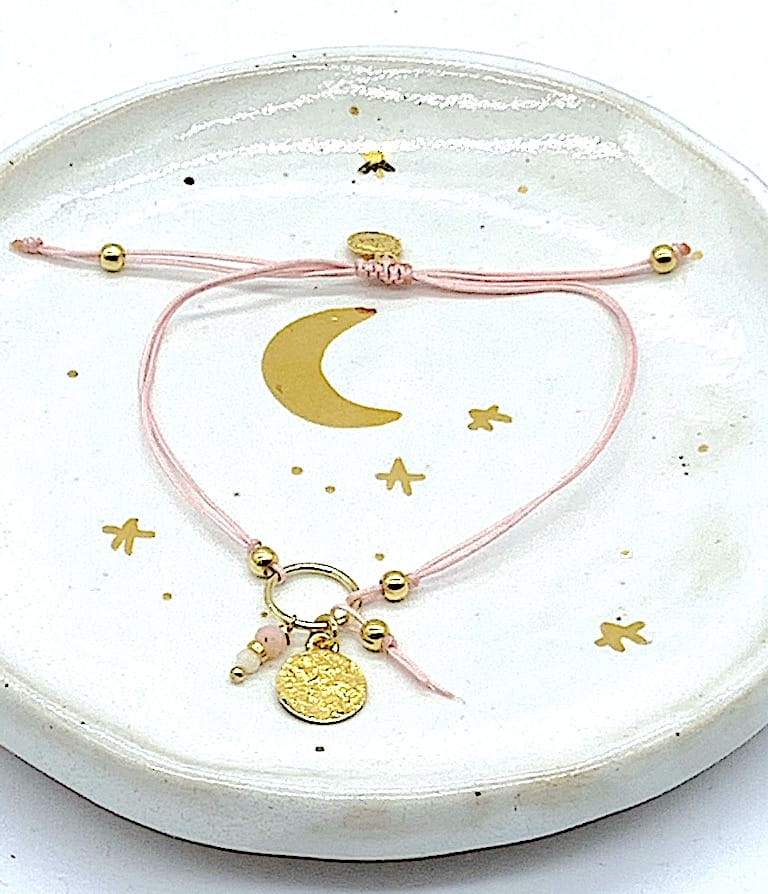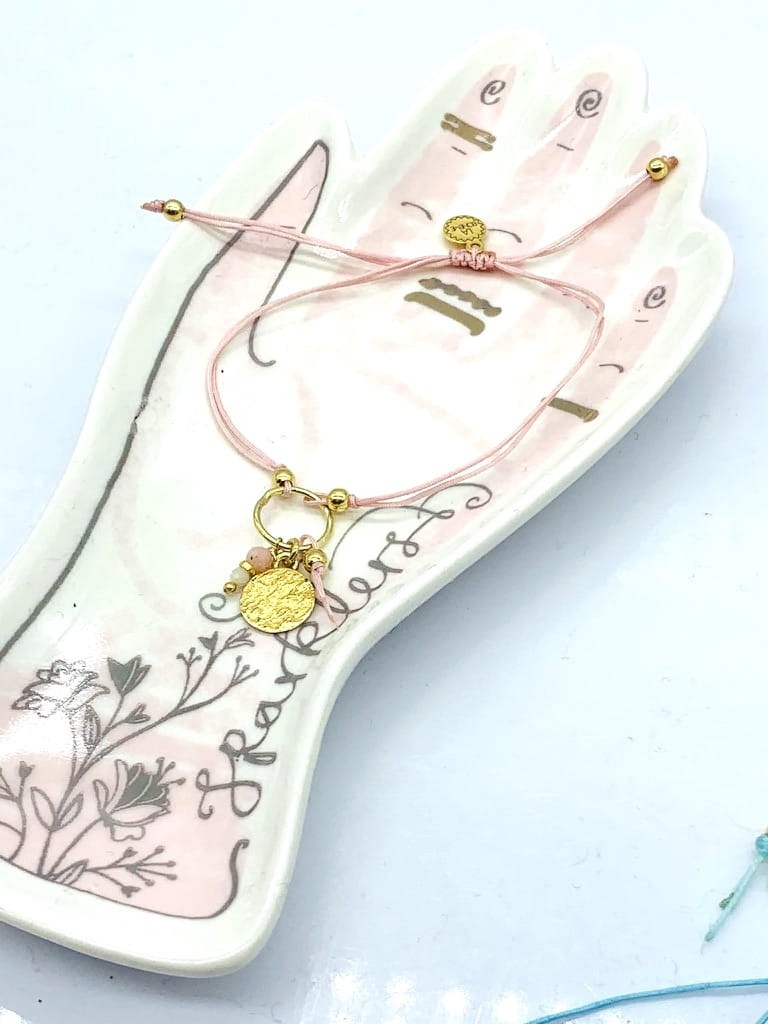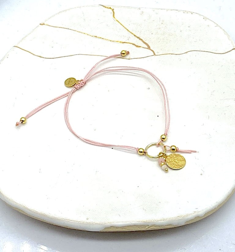 Bransoletka Boho kółeczko opal afrykański pudrowa złocona