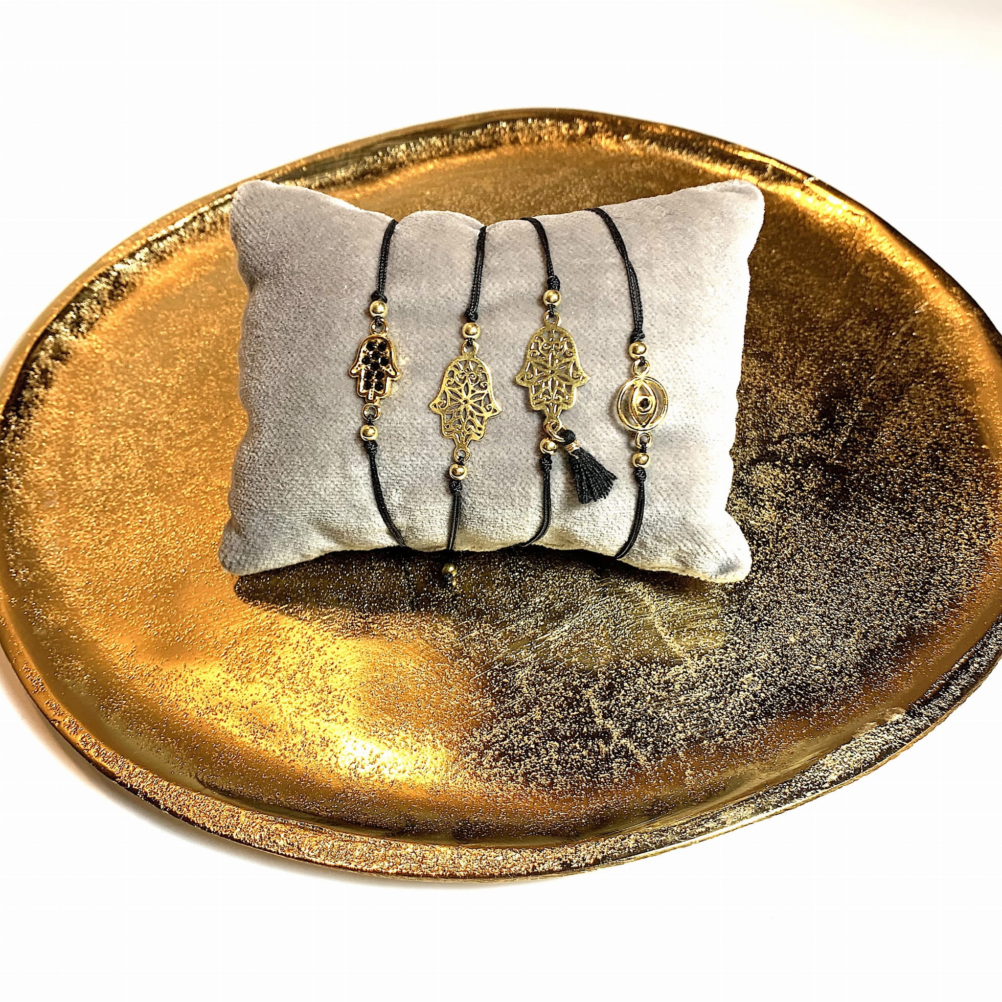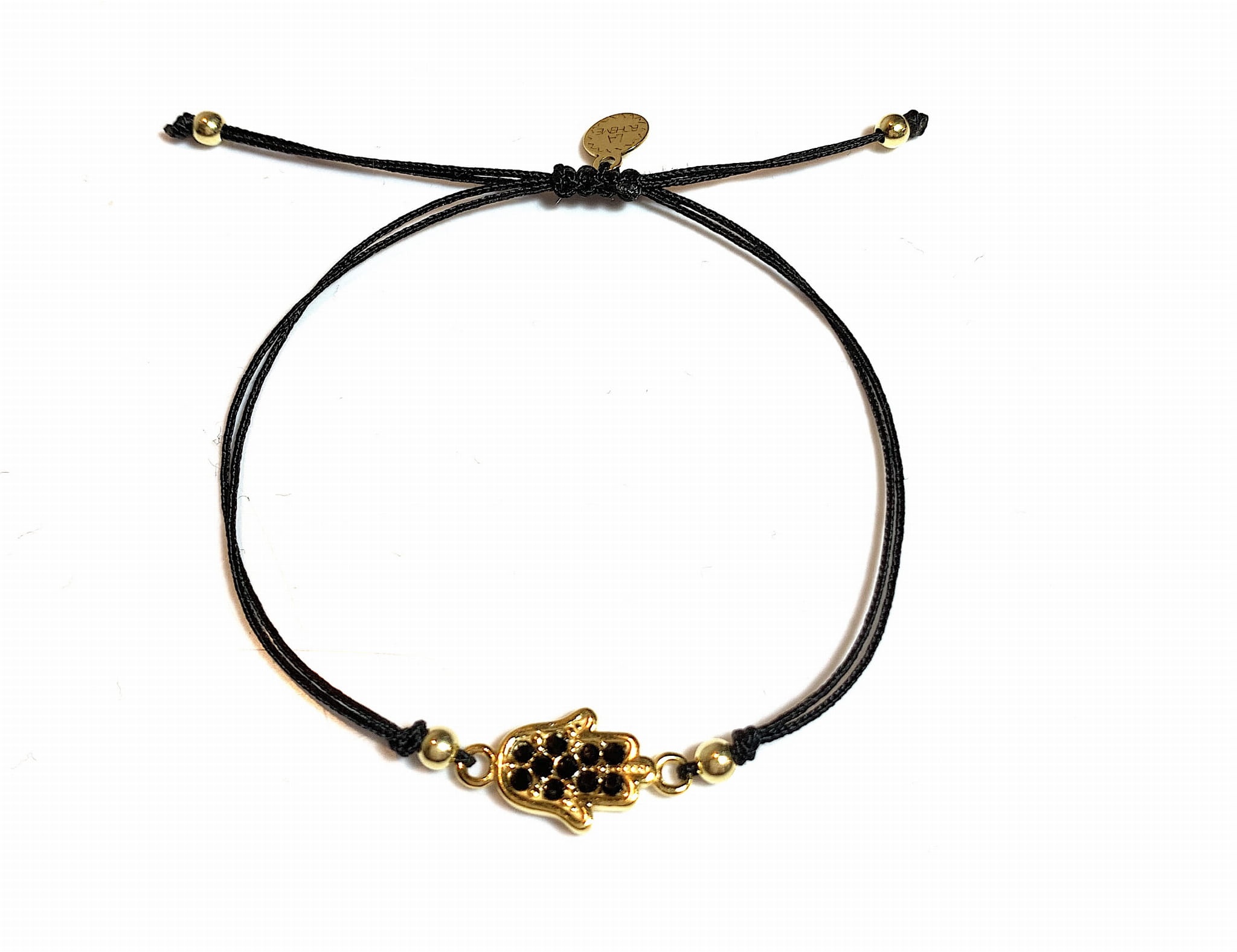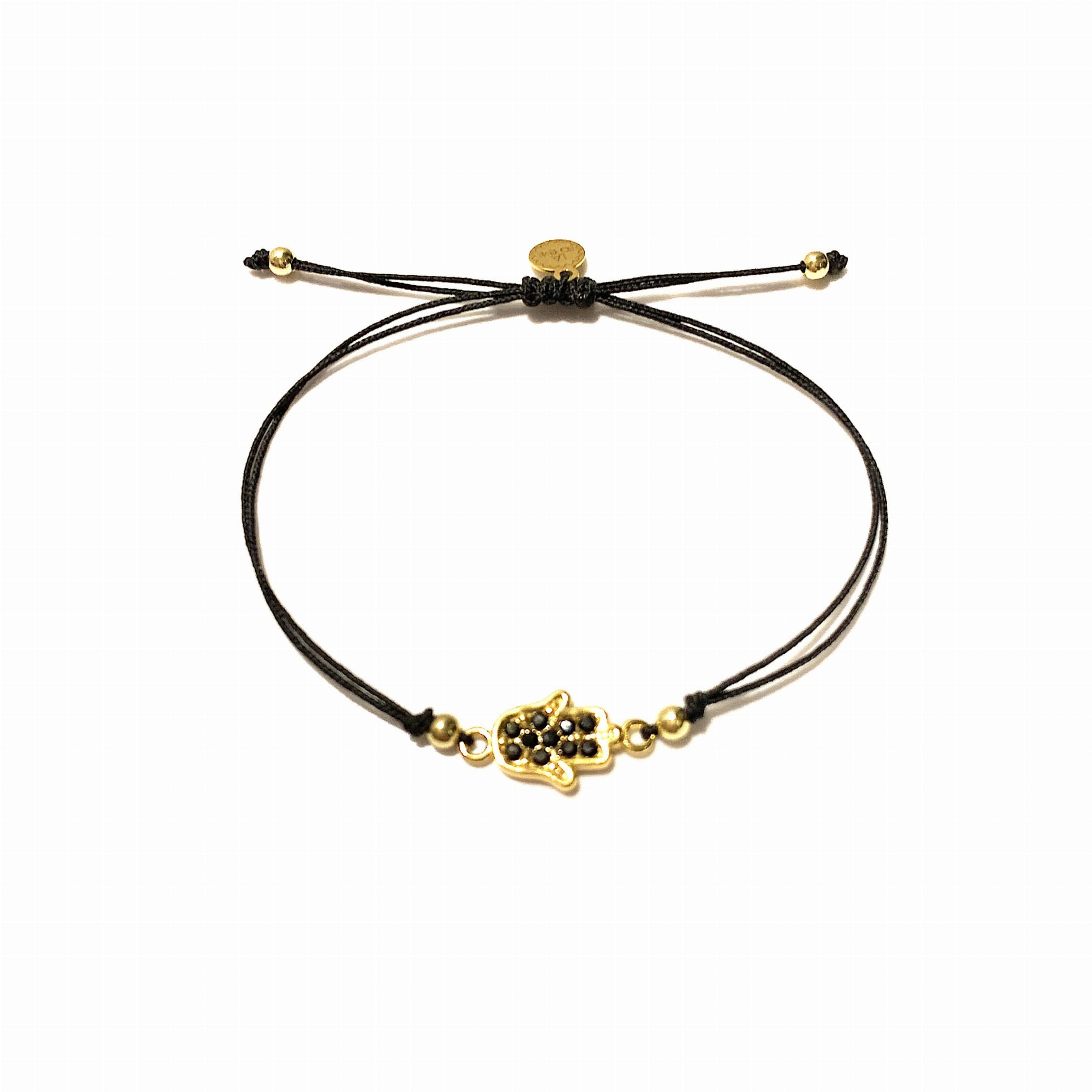 Bransoletka Dłoń Fatimy Hamsa z swarovski makrama czarna złota