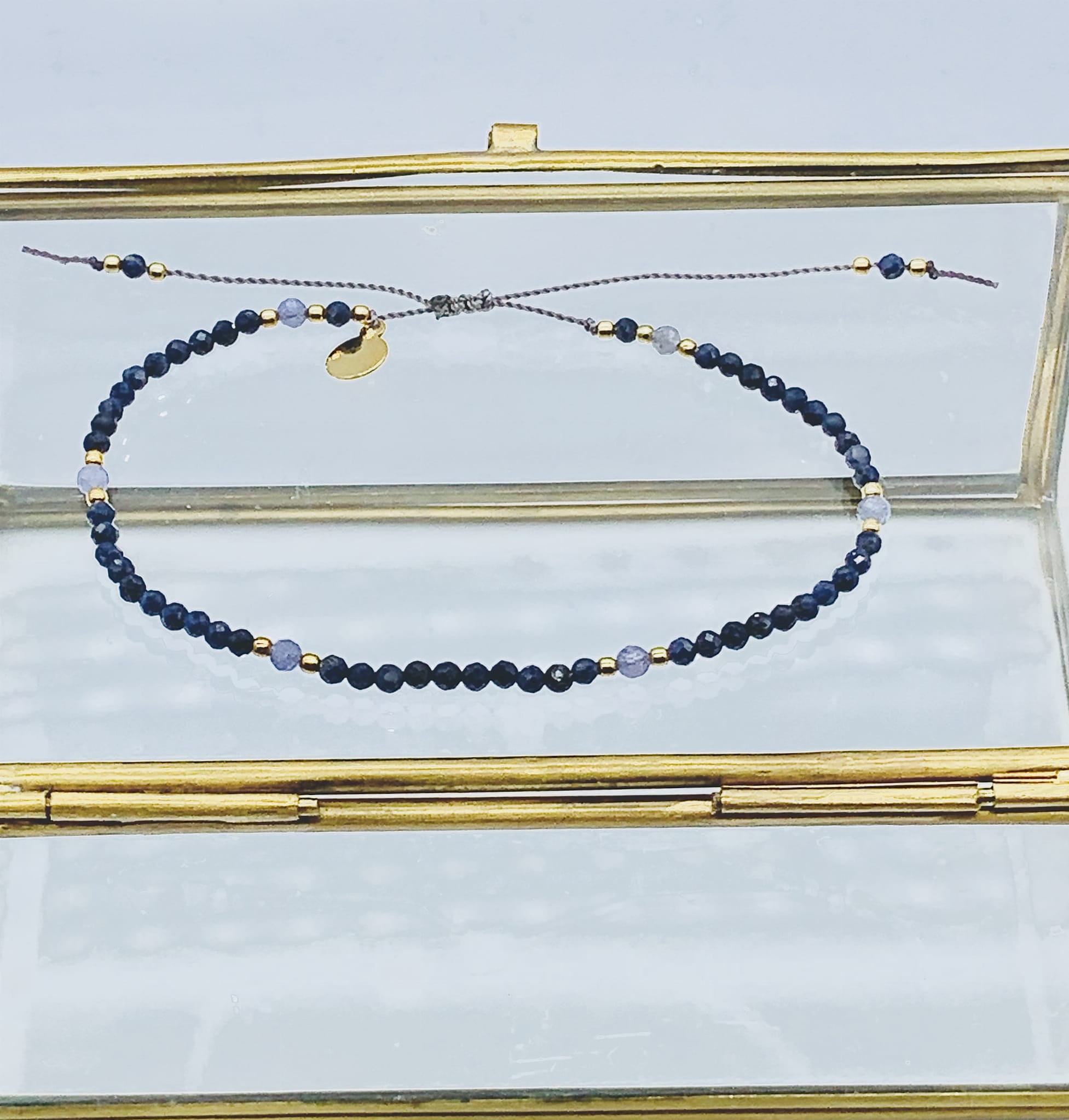 Bransoletka Naturalność ciemne szafiry tanzanity 2 mm złocona