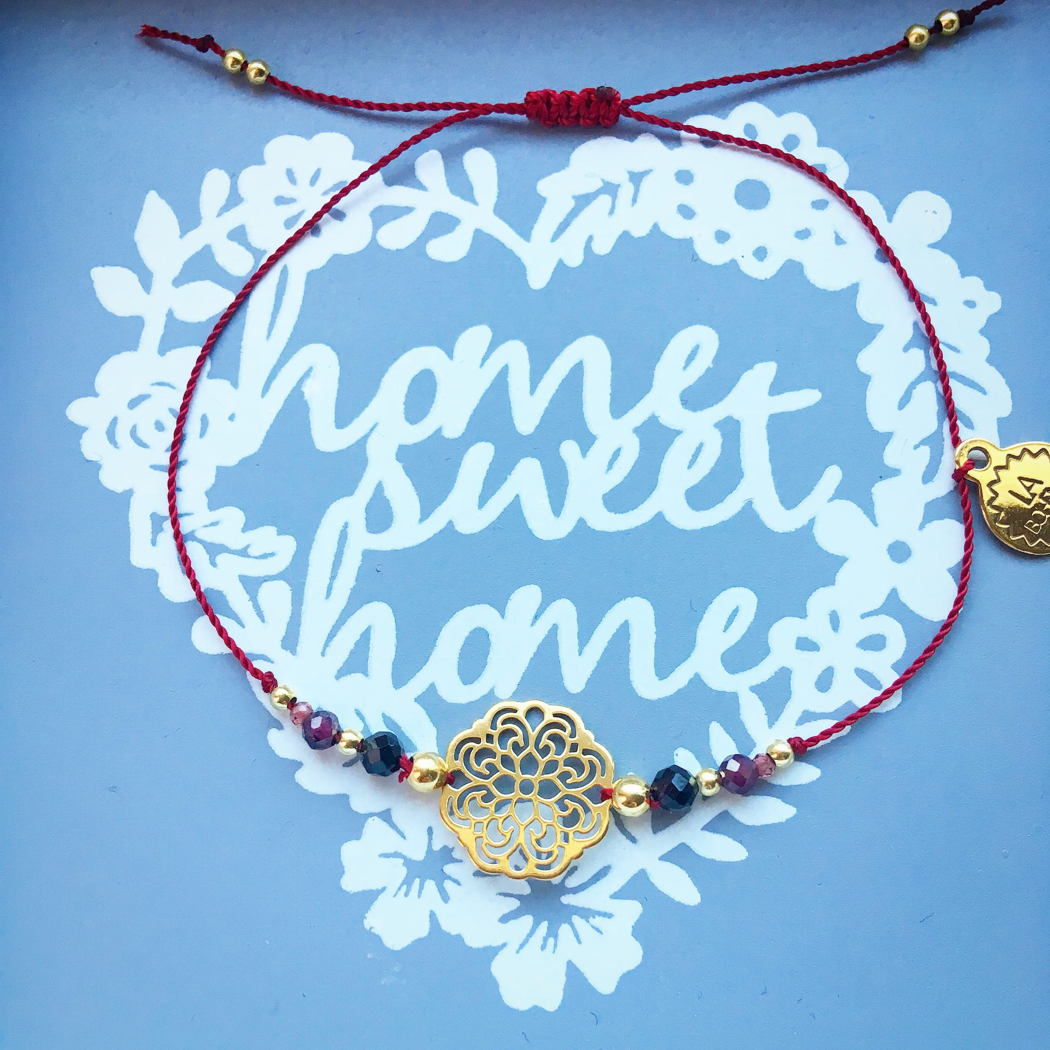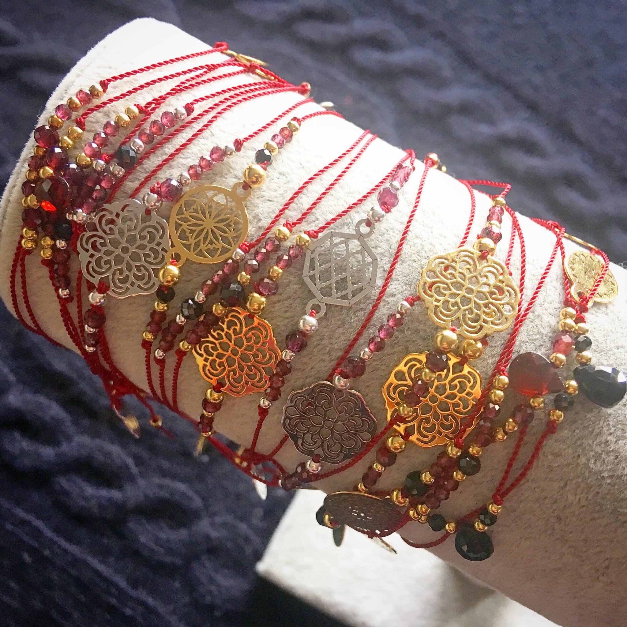 Bransoletka Naturalność granaty ze spinelem i rozetką pozłacana