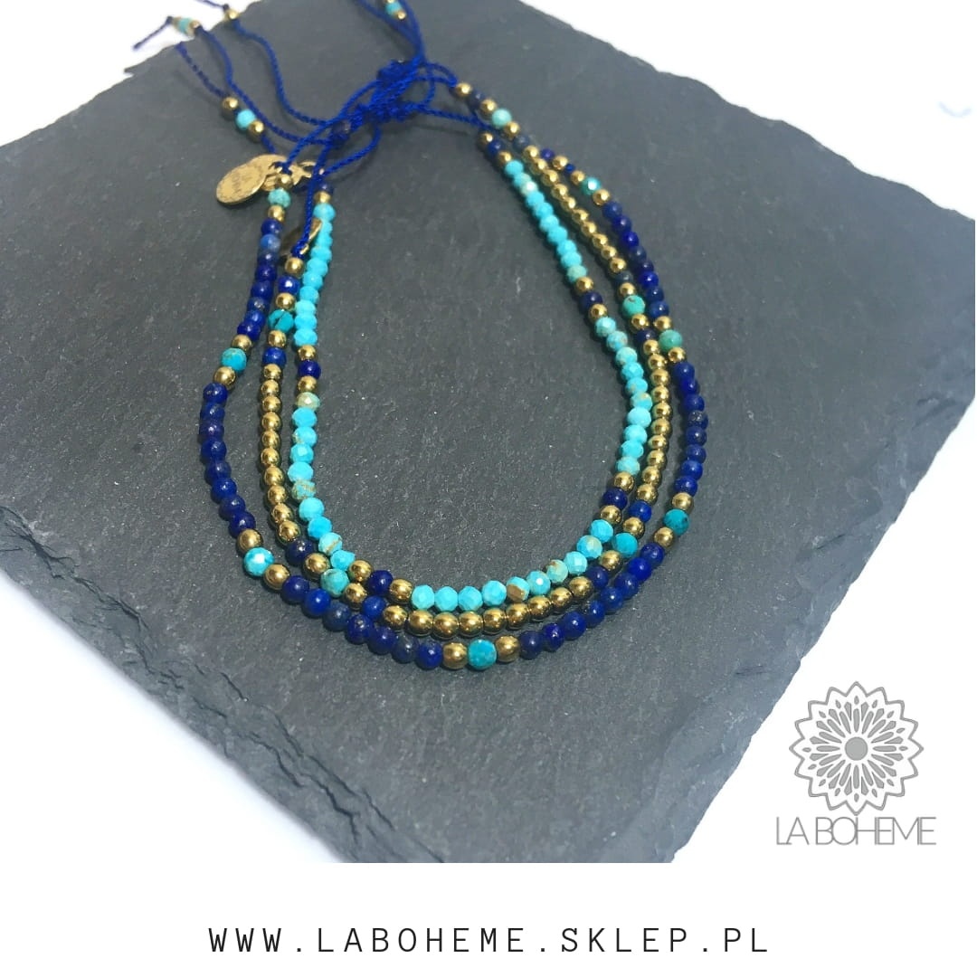 Bransoletka Naturalność lapis lazuli i turkus pozłacana