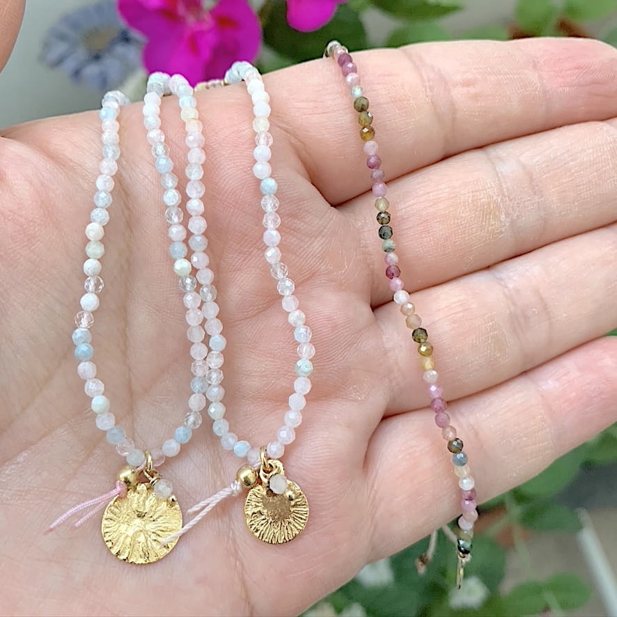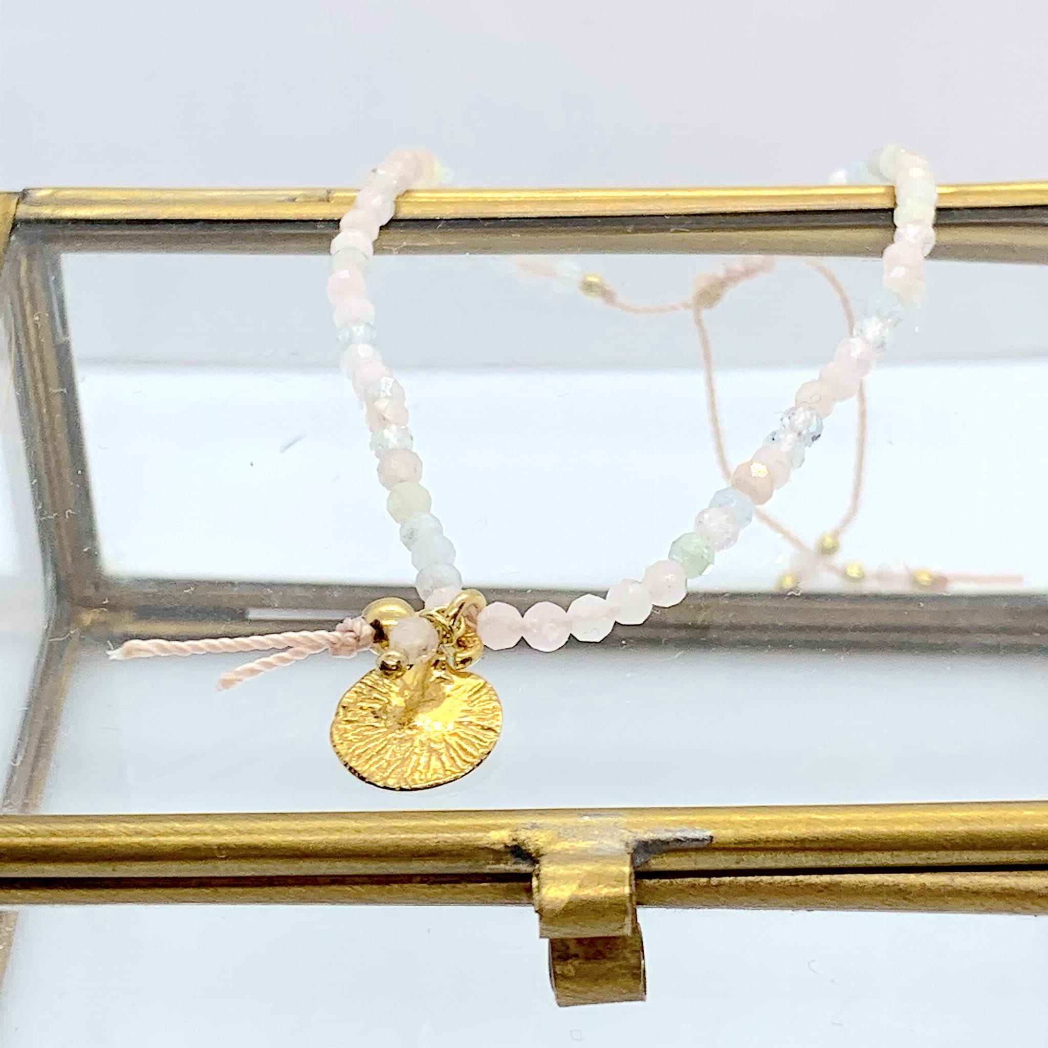 Bransoletka Naturalność morganity blaszka i niteczka złocona