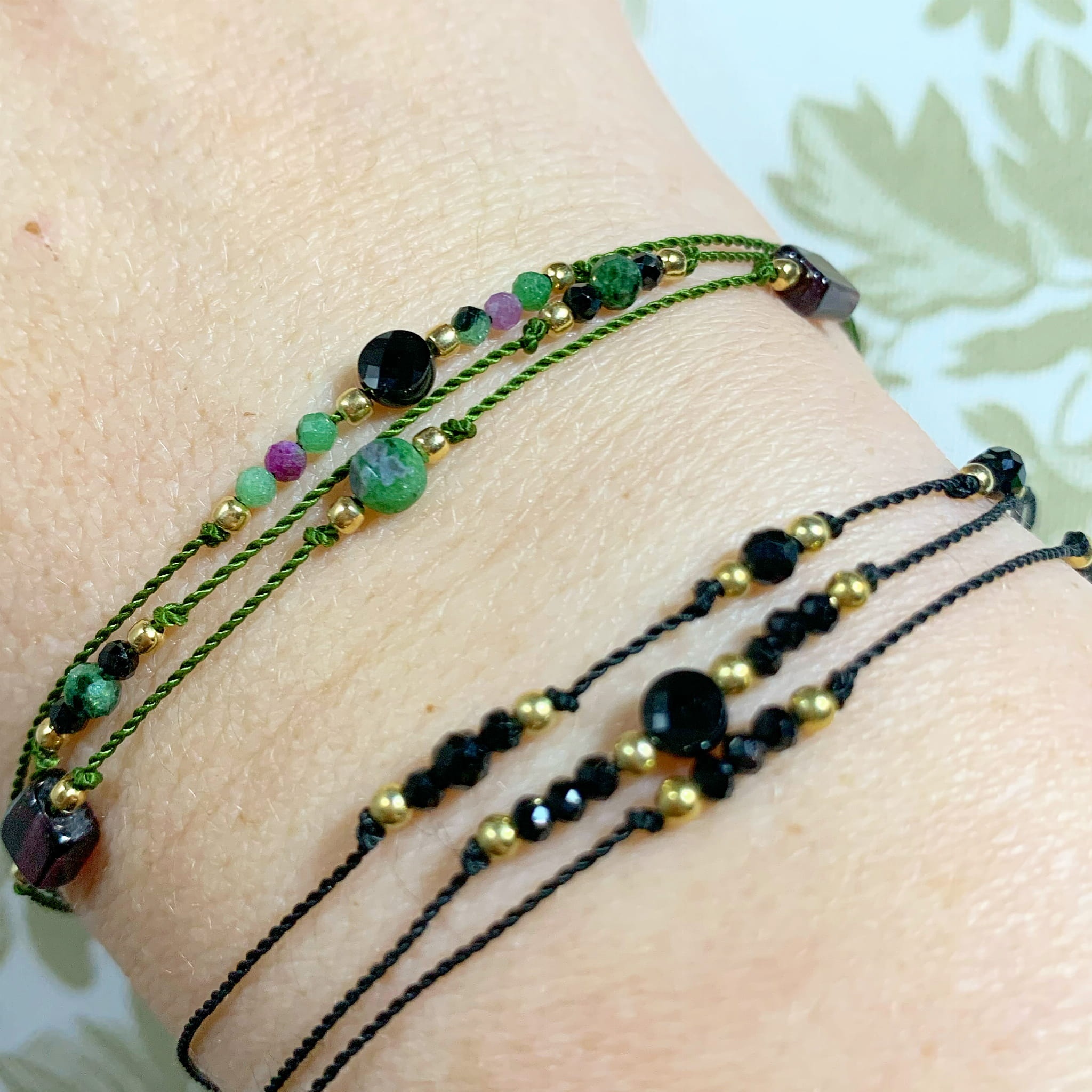 Potrójna bransoletka z kamienia naturalnych na nylonowej niteczce.