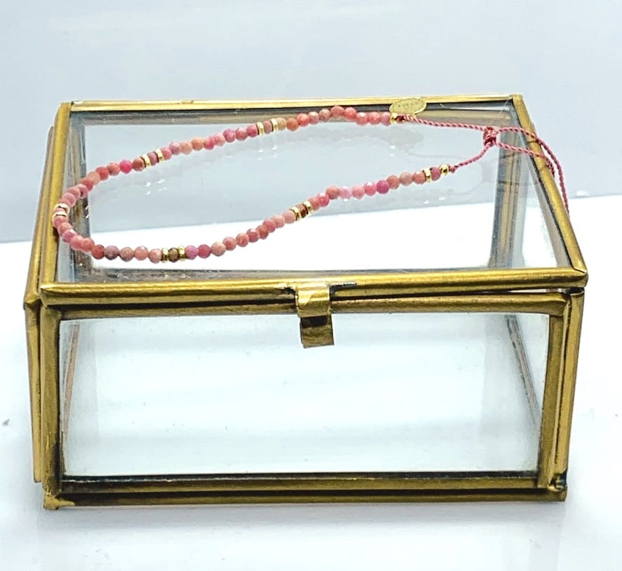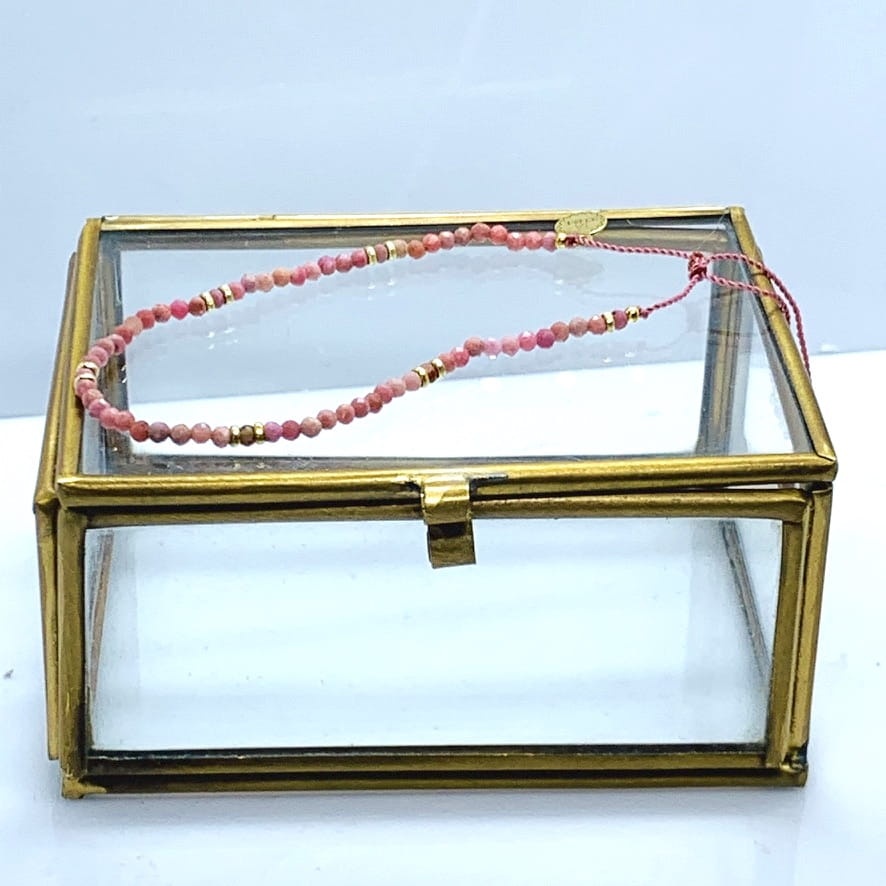 Potrójna bransoletka z kamienia naturalnych  przetykanych srebrnymi złoconymi kuleczkami na nylonowej niteczce.