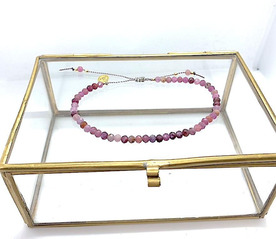 Bransoletka z kamienia naturalnych na nylonowej niteczce. Wykończona logo La Boheme.