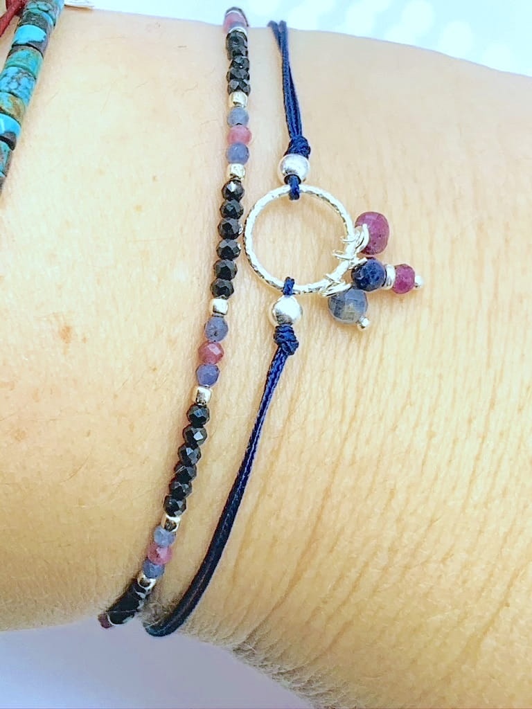 Bransoletka Naturalność spinel szafir i rubin srebrna