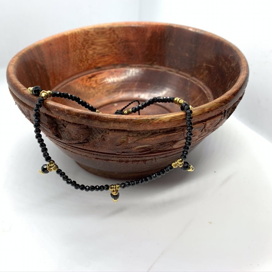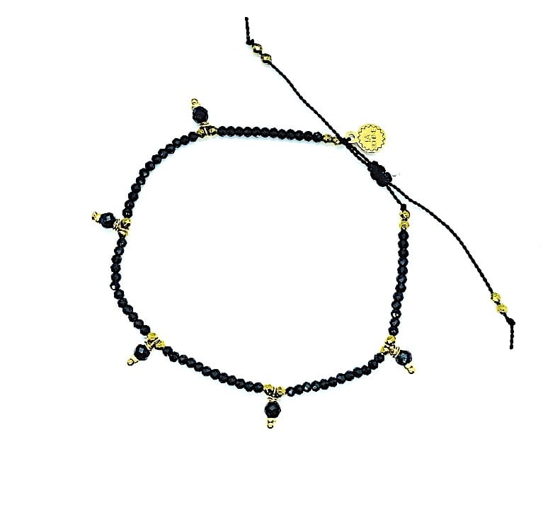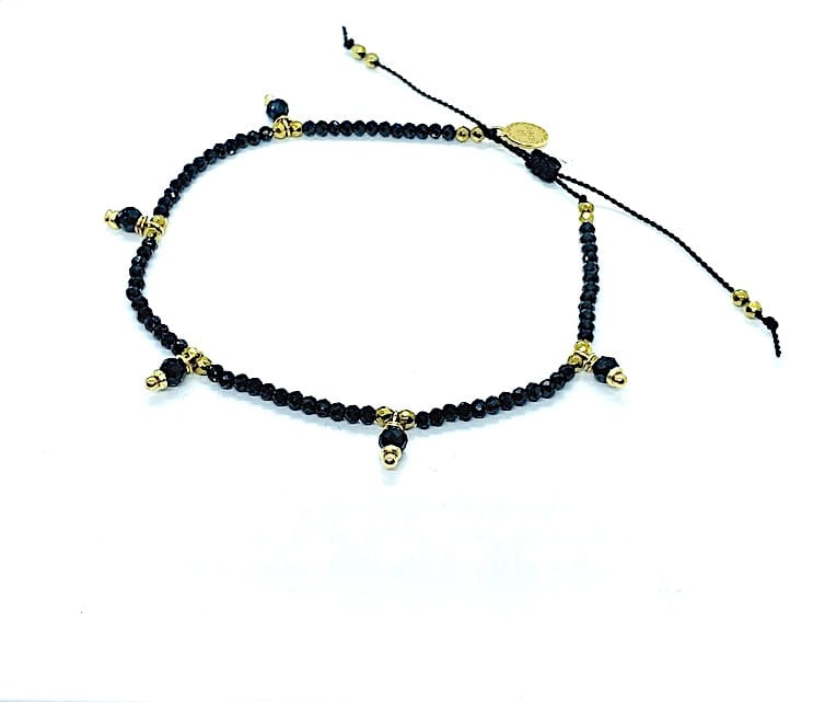 Bransoletka Naturalność spinele z wiszącymi kamyczkami złocona