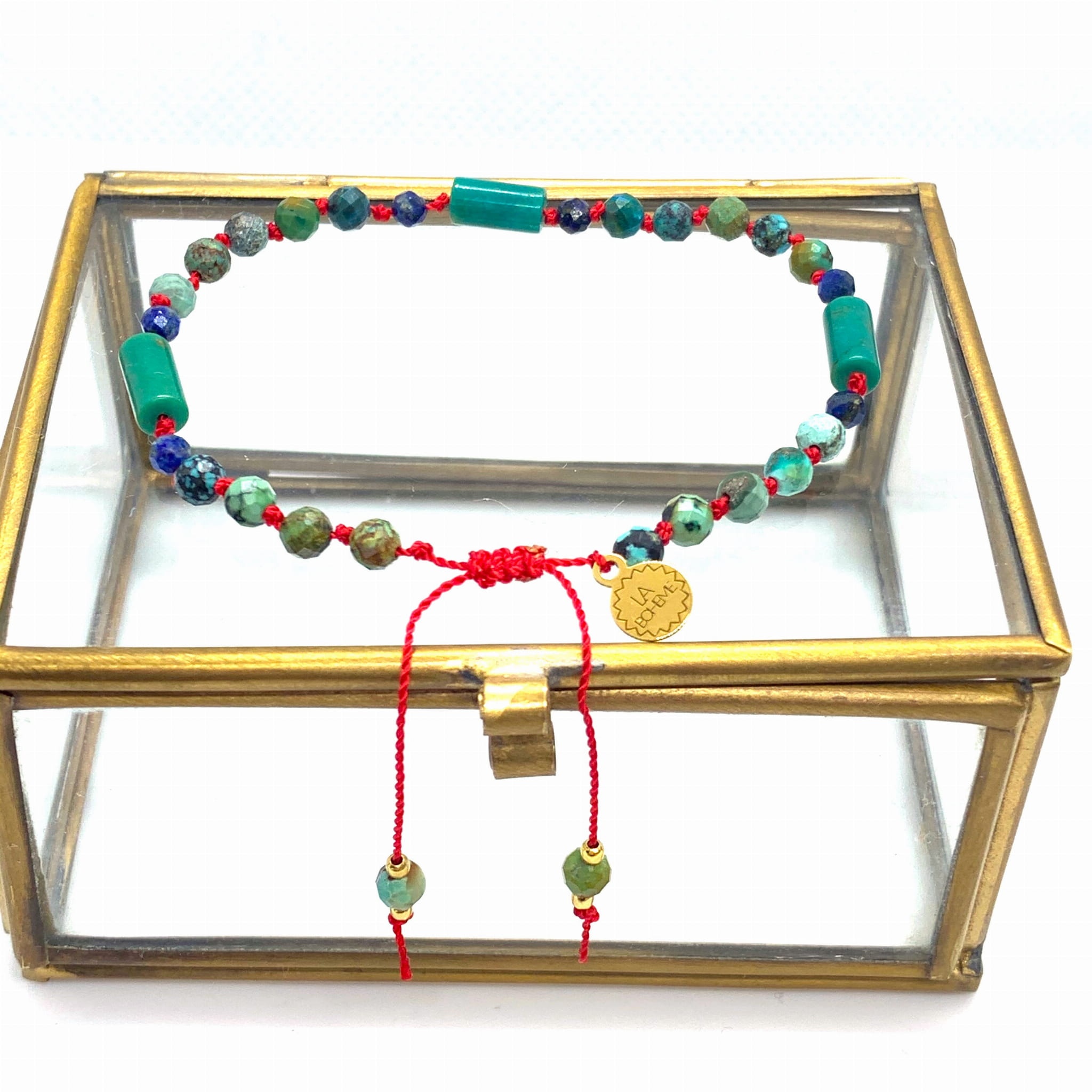 Bransoletka z kamienia naturalnych przesupełkowanych na nylonowej niteczce. Wykończona logo La Boheme.