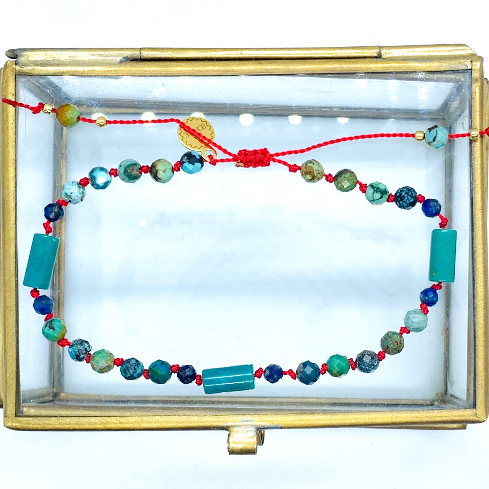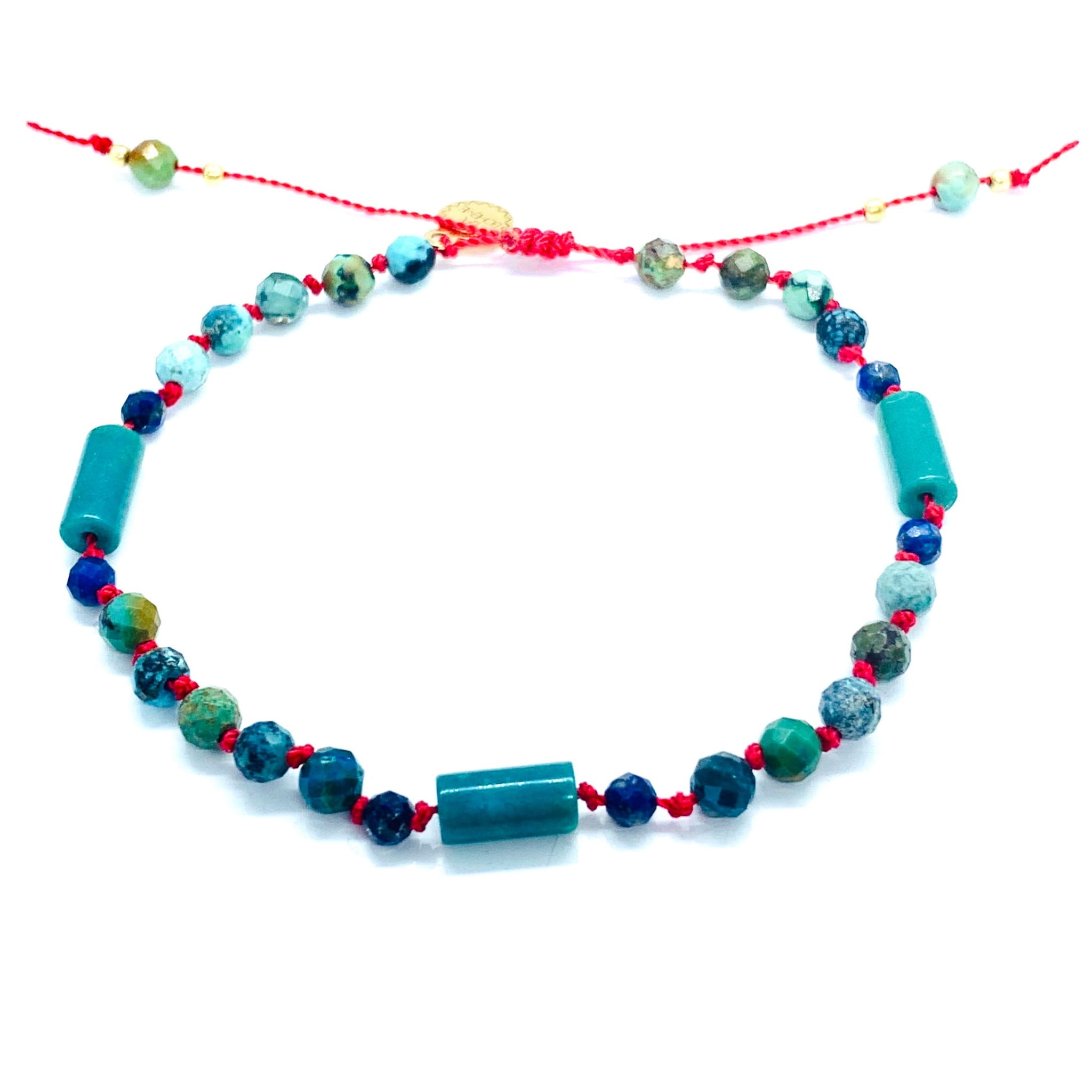 Bransoletka Naturalność supełkowany turkus czerwona złocona