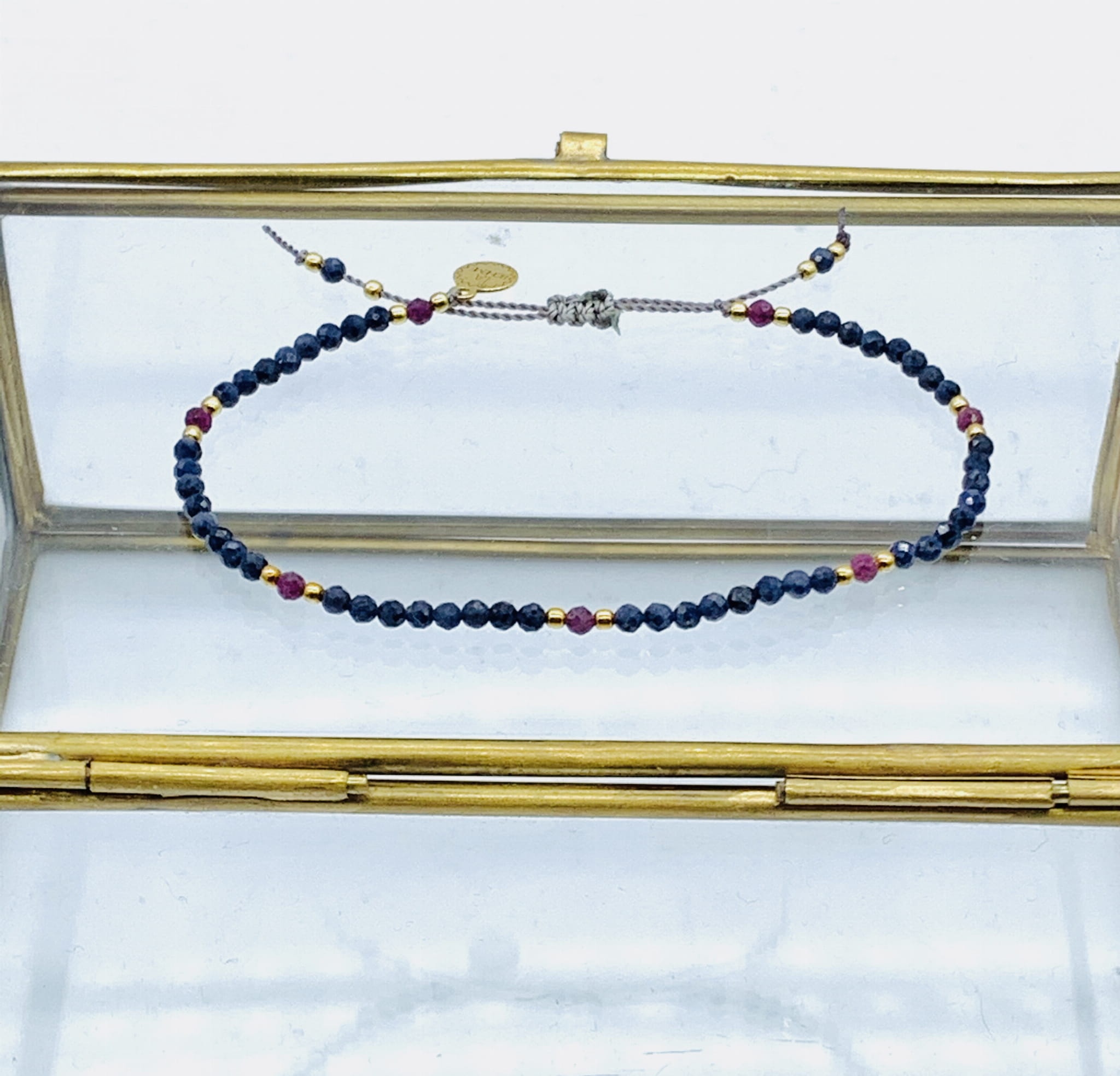 Bransoletka Naturalność szafiry rubin 2,5 mm złocona