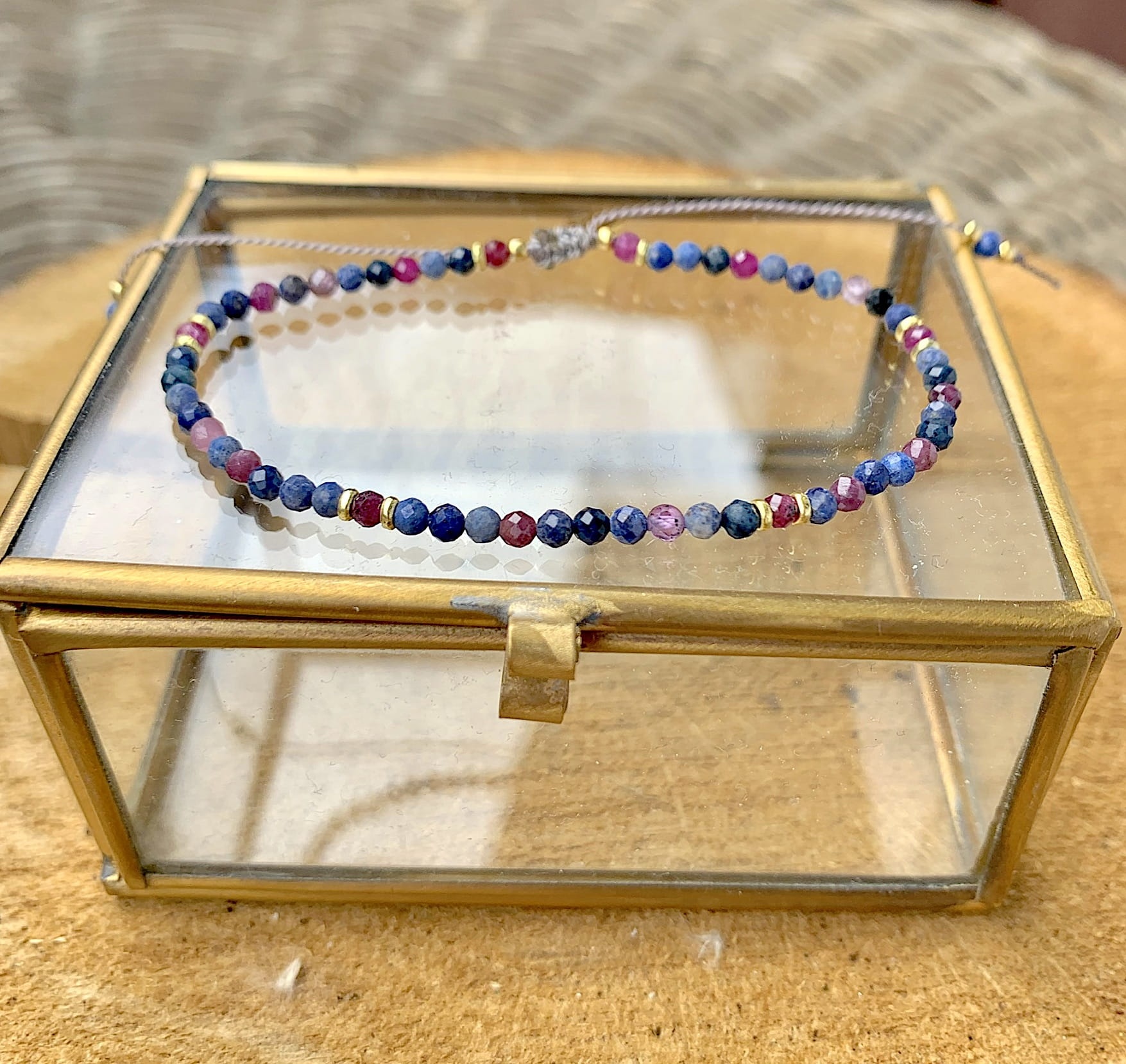 Bransoletka Naturalność szafiry rubiny ciemniejsze złocona