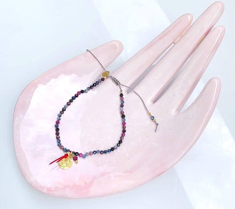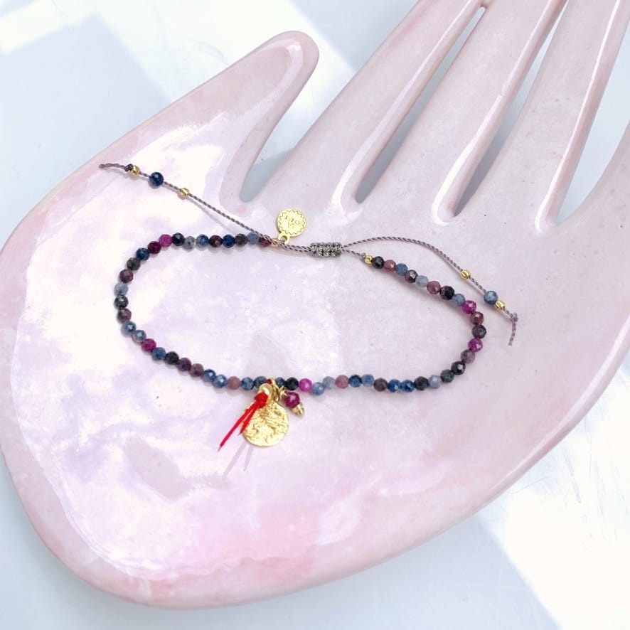 Bransoletka Naturalność szafiry rubiny z blaszką złocona