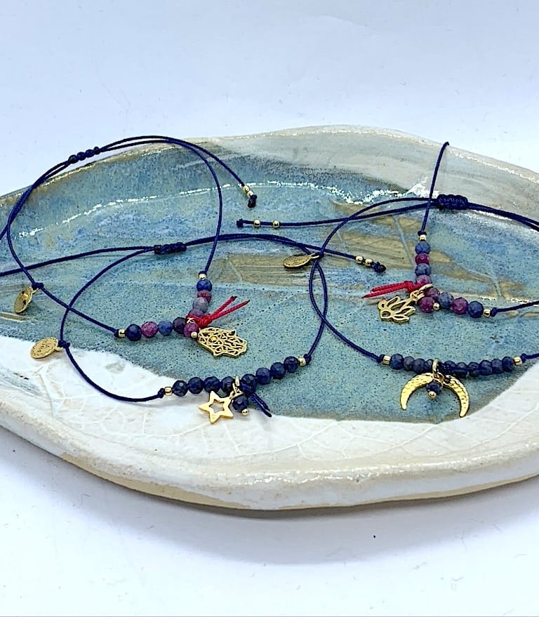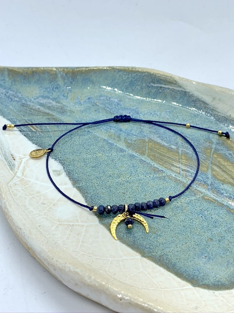Bransoletka Naturalność szafiry zawieszka Luna Księżyc niteczka złocona