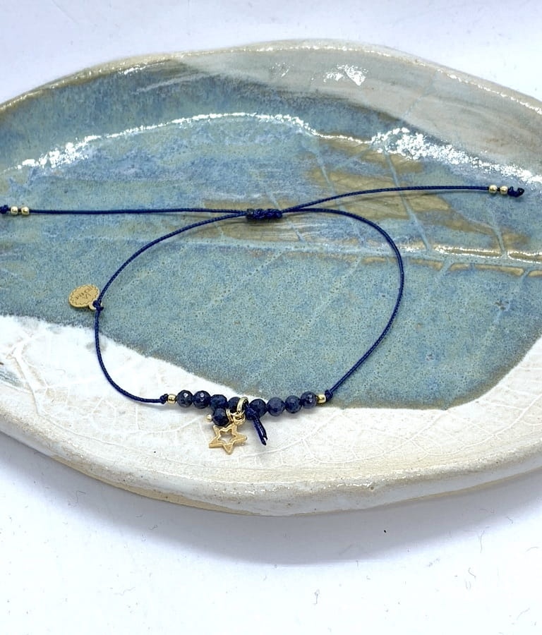 Bransoletka Naturalność szafiry zawieszka gwiazdka niteczka złocona