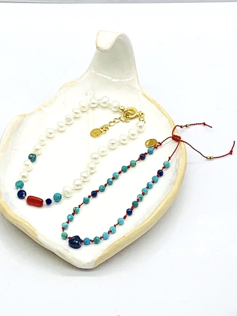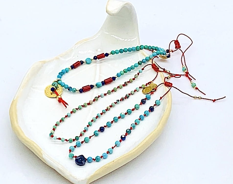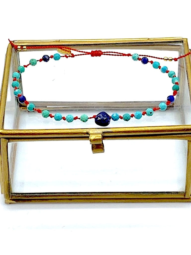 Bransoletka Naturalność turkus i lapis supełkowana złota