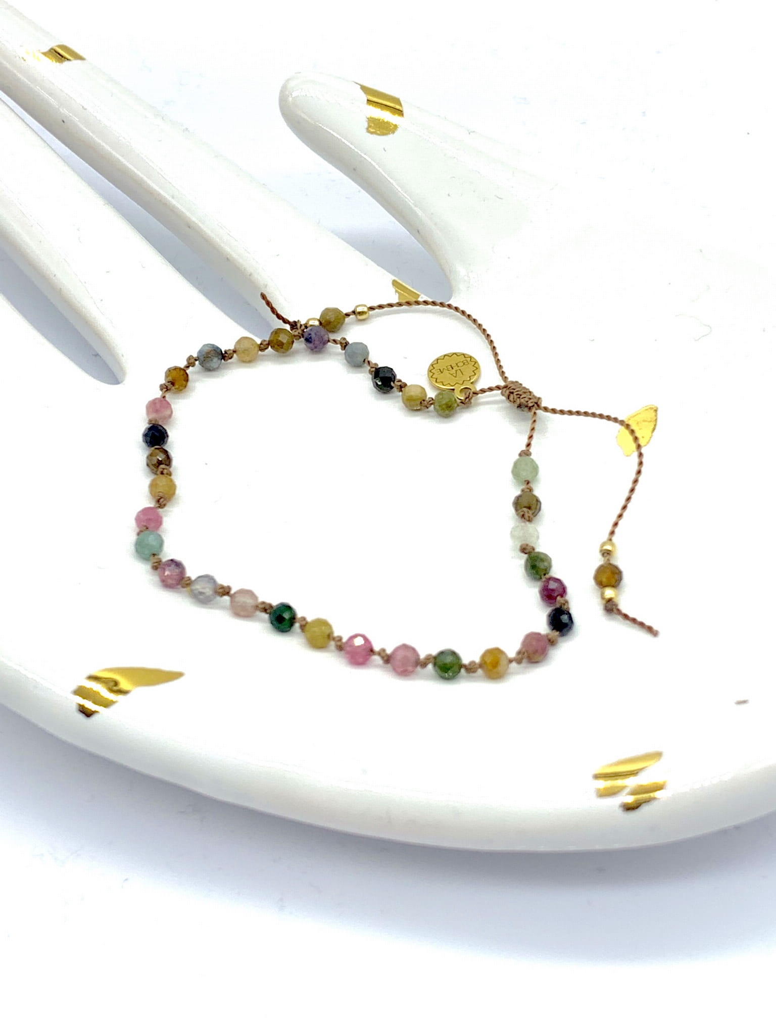 Bransoletka Naturalność turmalin supełkowana beż złota