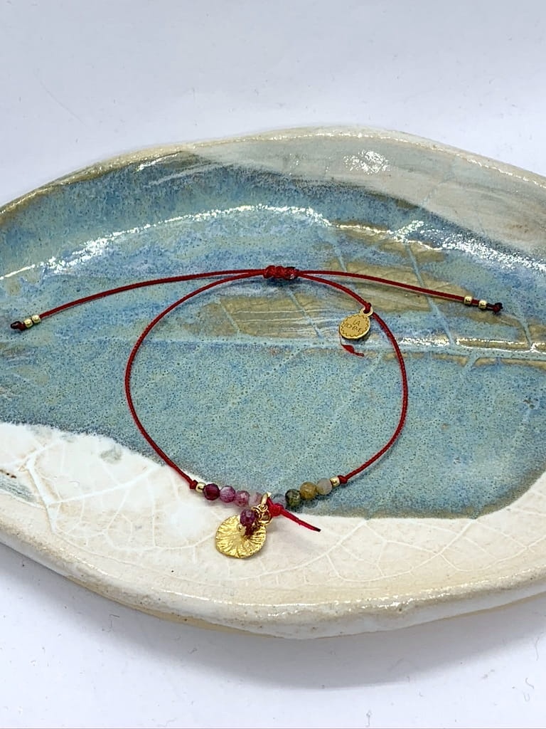 Bransoletka Naturalność turmalin zawieszka blaszka niteczka złocona