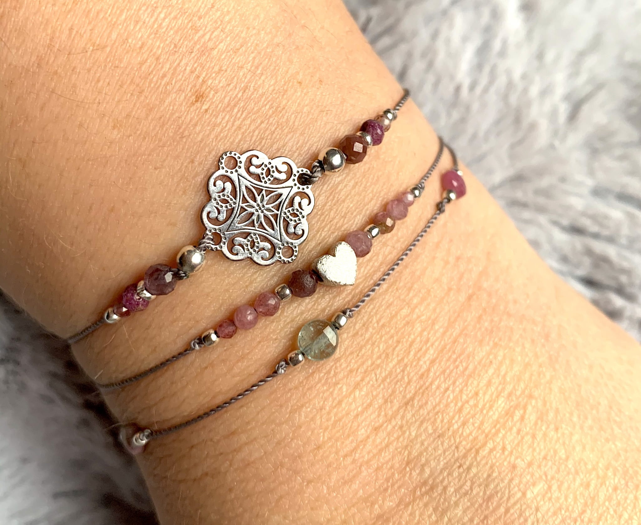 Bransoletka z kamienia naturalnych na nylonowej niteczce.