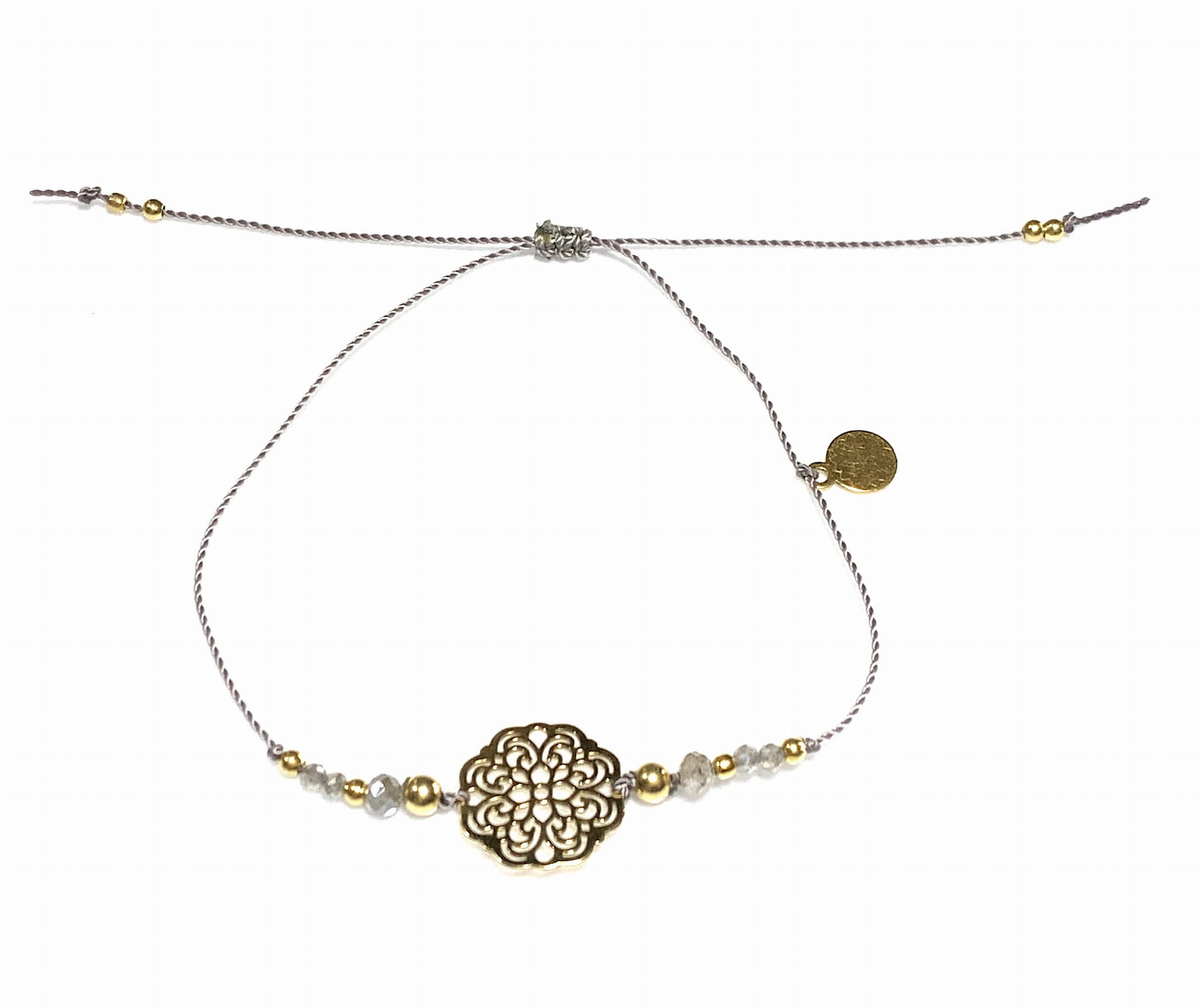 Bransoletka Naturalność z rozetką labradorytów złocona