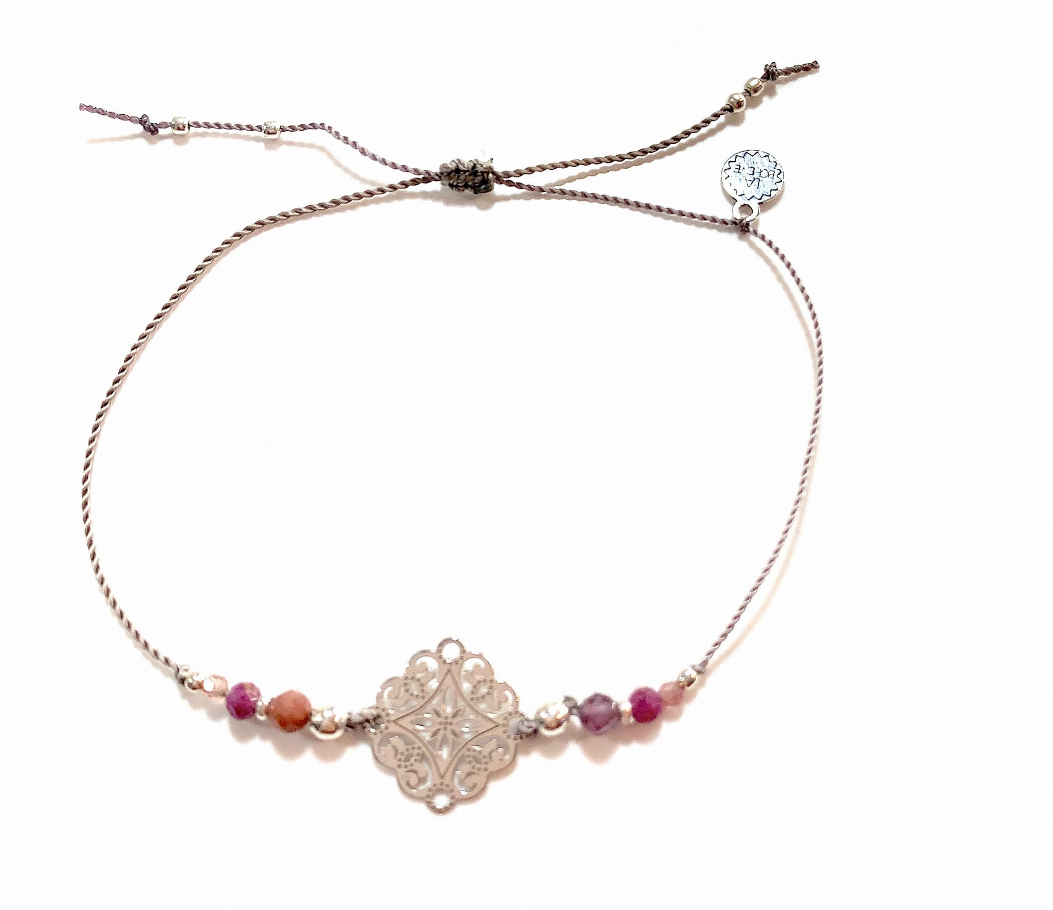 Bransoletka z kamienia naturalnych na nylonowej niteczce ze srebrnym łącznikiem.