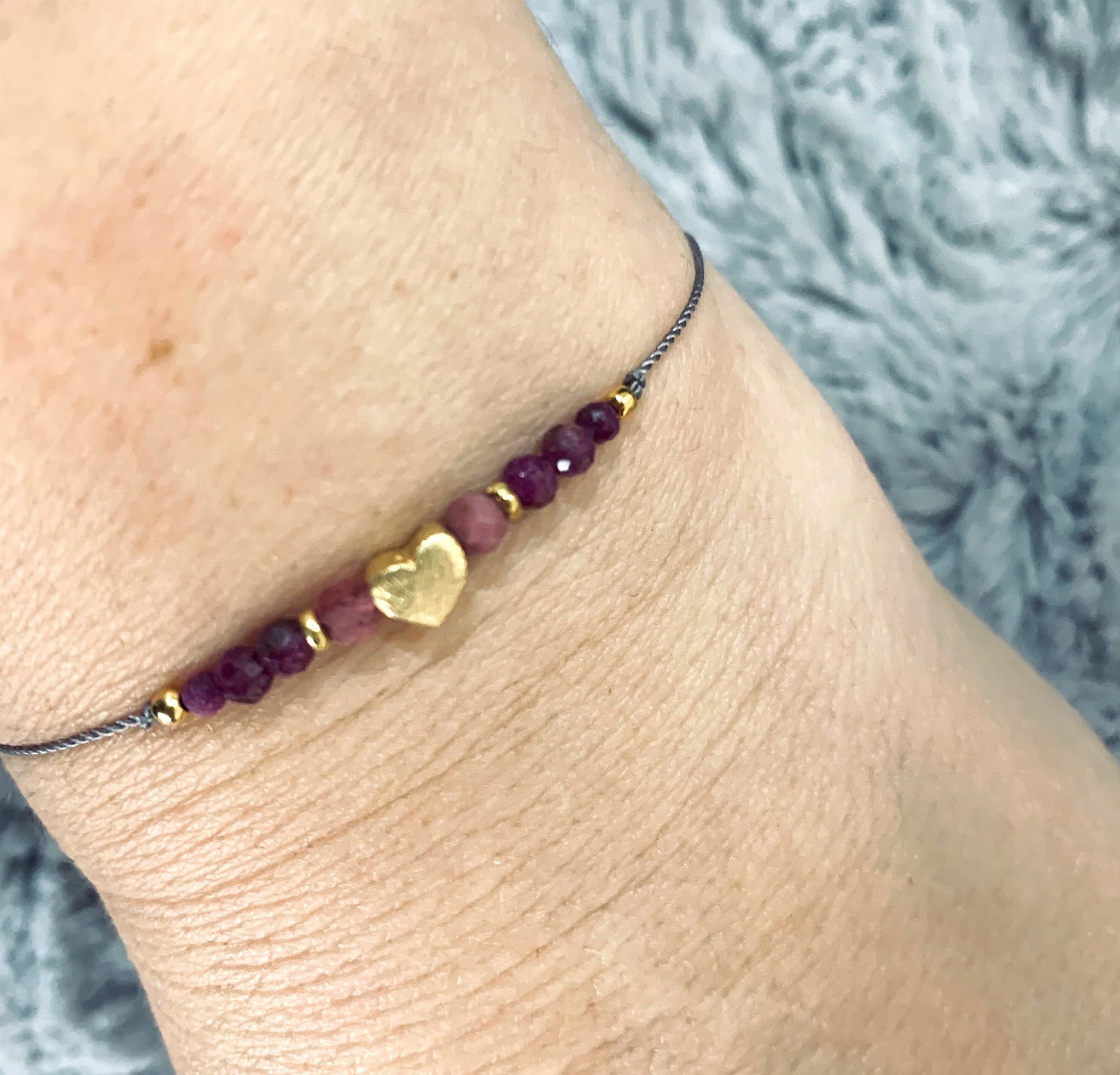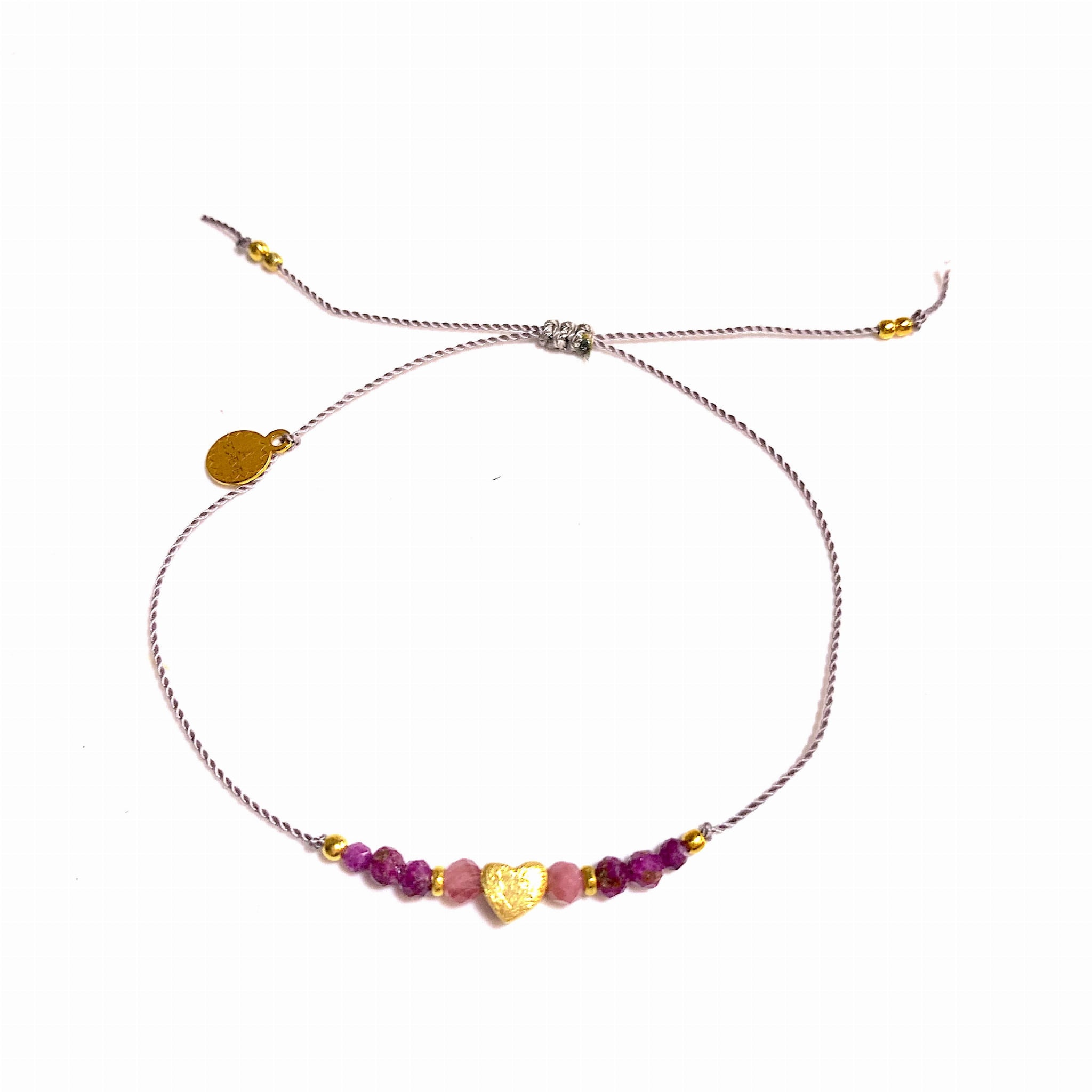 Bransoletka Naturalność z serduszkiem różowy turmalin pozłacana