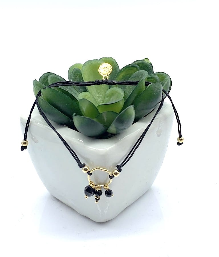 Bransoletka Romance czarny turmalin spinel kółeczko czarna złocona
