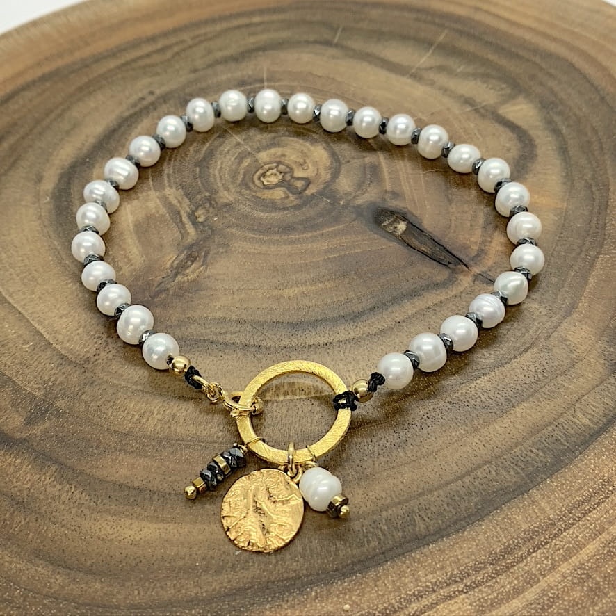 Bransoletka Royalty perły hematyt moneta