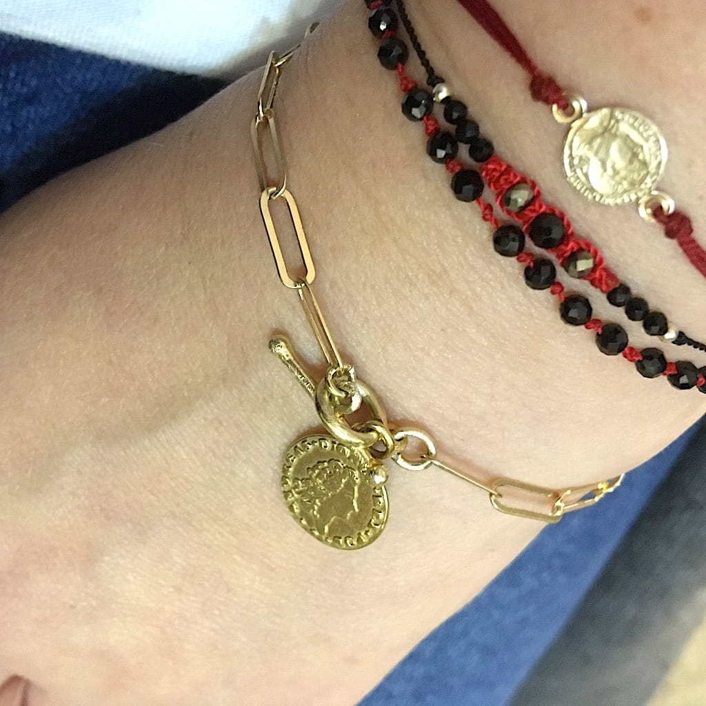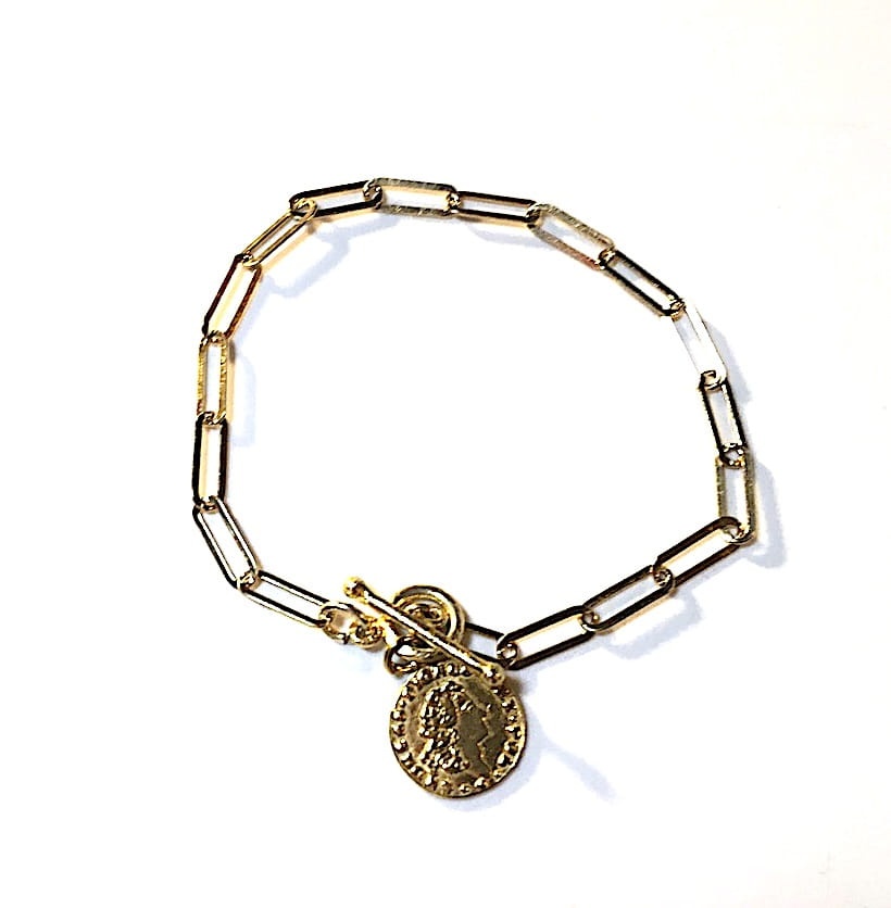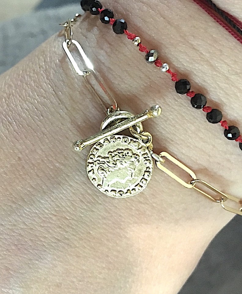 Bransoletka z grubego łańcucha  z zawieszką z monety.