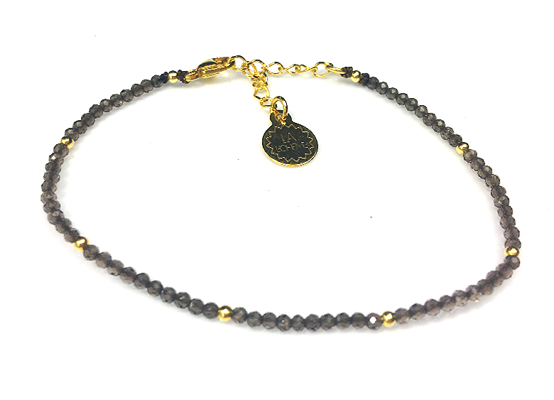 Bransoletka kwarc dymny ciemny pozłacana