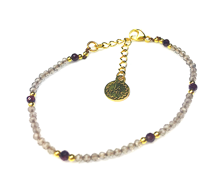 Bransoletka kwarc dymny jasny z granatem pozłacana
