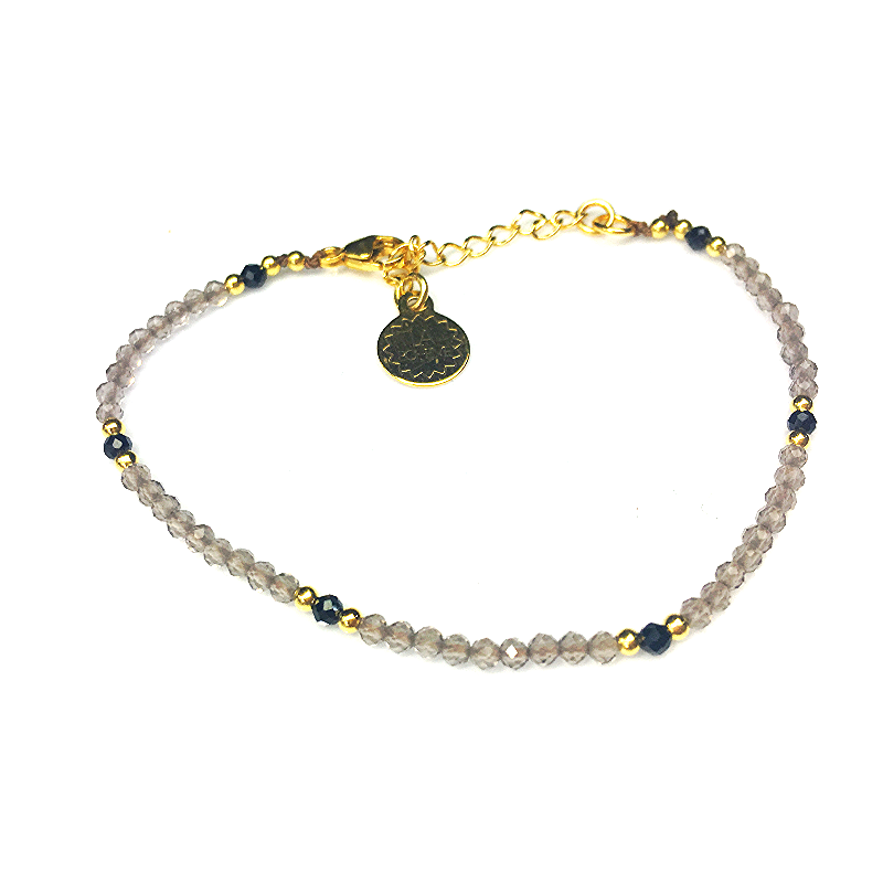 Bransoletka kwarc dymny jasny z pirytem pozłacana