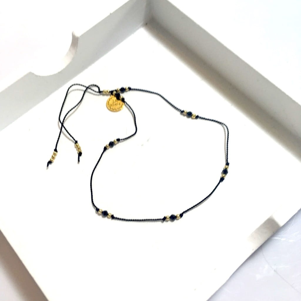 Bransoletka na nogę kostkę spinel czarna złota