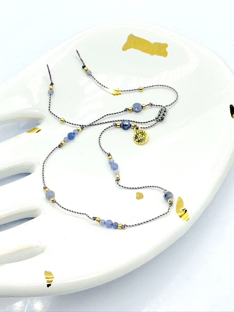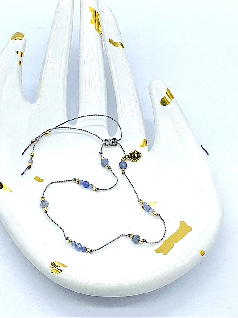 Bransoletka na nogę kostkę tanzanit szata złota