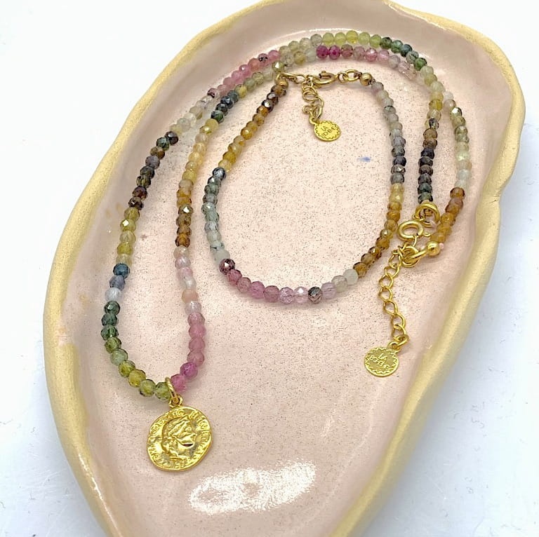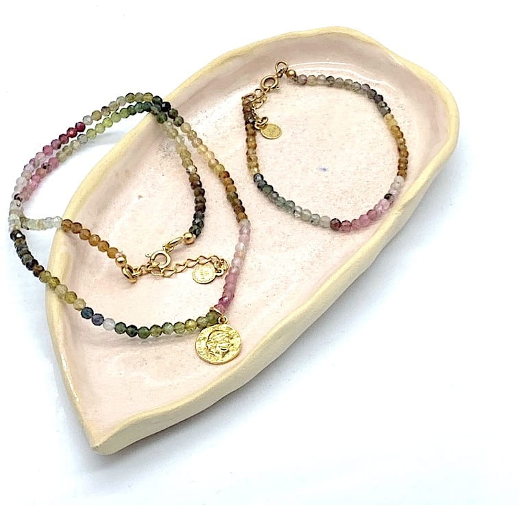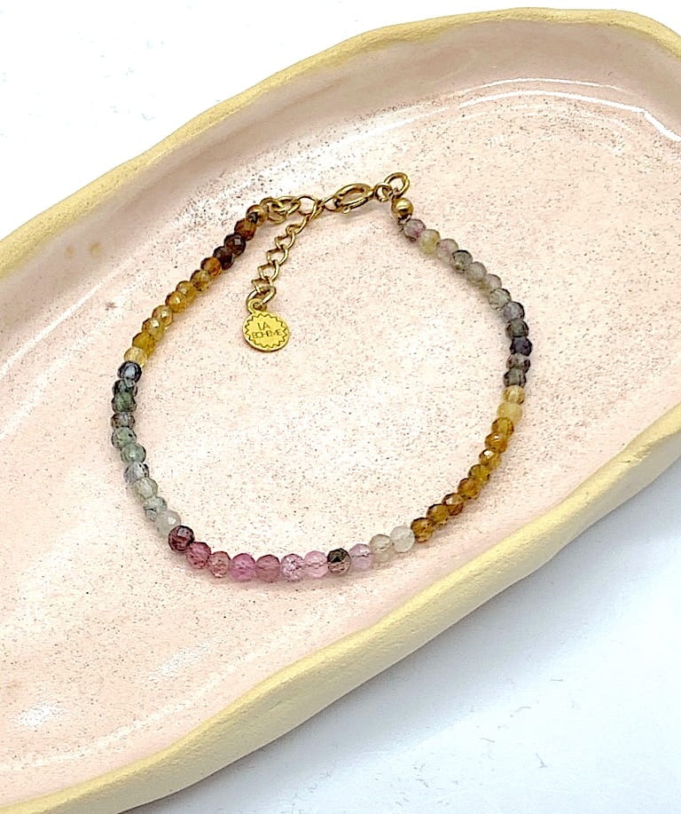 Bransoletka z turmalinów tęczowych zapięcie złocona
