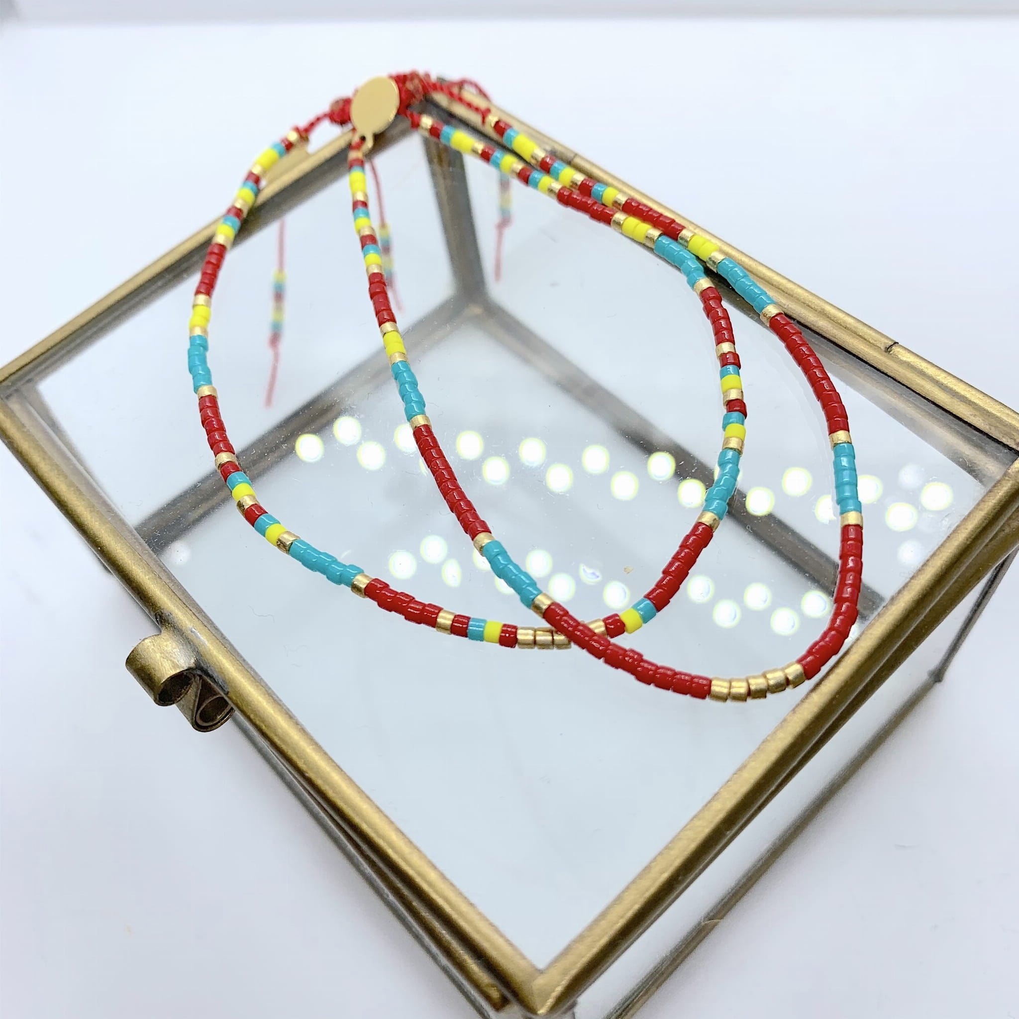 Bransoletka Szczęścia "Lucky Charm" to piękna kompozycja szklanych japońskich koralików Miyuki umieszczonych na pojedyńczym jedwabnym sznurku. Całość wykończona pozłacaną srebrną  zawieszką 'La Boheme".