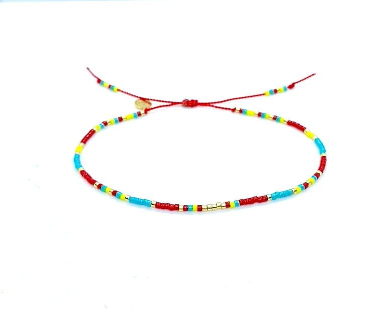 Jedwabna bransoletka "Lucky Charm" czerwono-turkusowa II