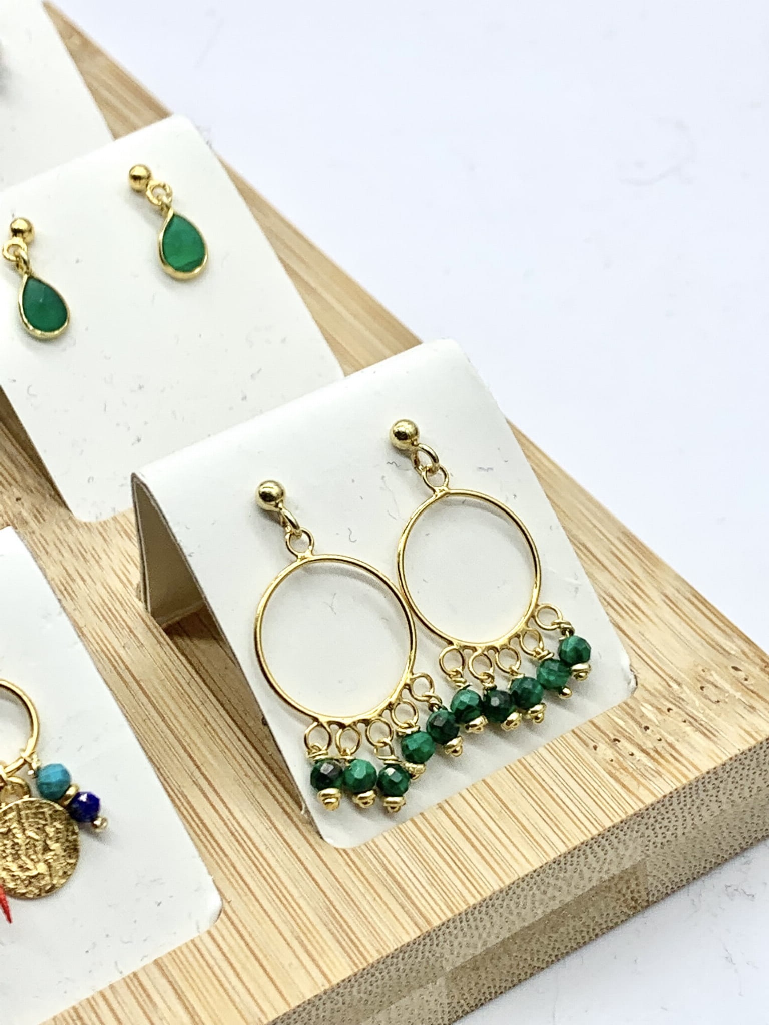 Kolczyki BOHEME koła na sztyft z naturalnych kamieni, kółeczko średnica 10mm.