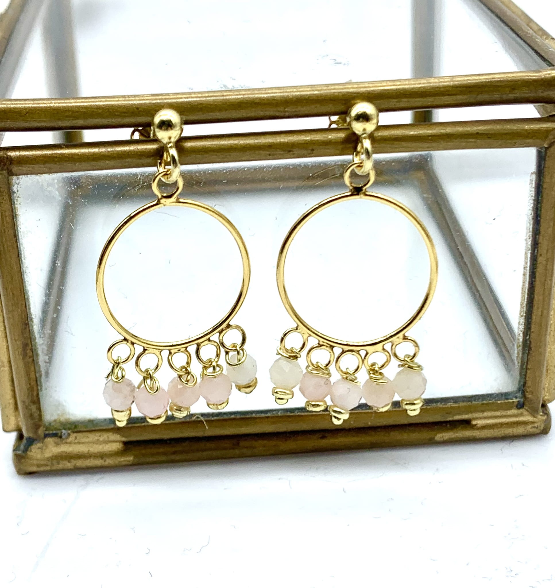 Kolczyki BOHEME koła sztyft opal różowy złocone
