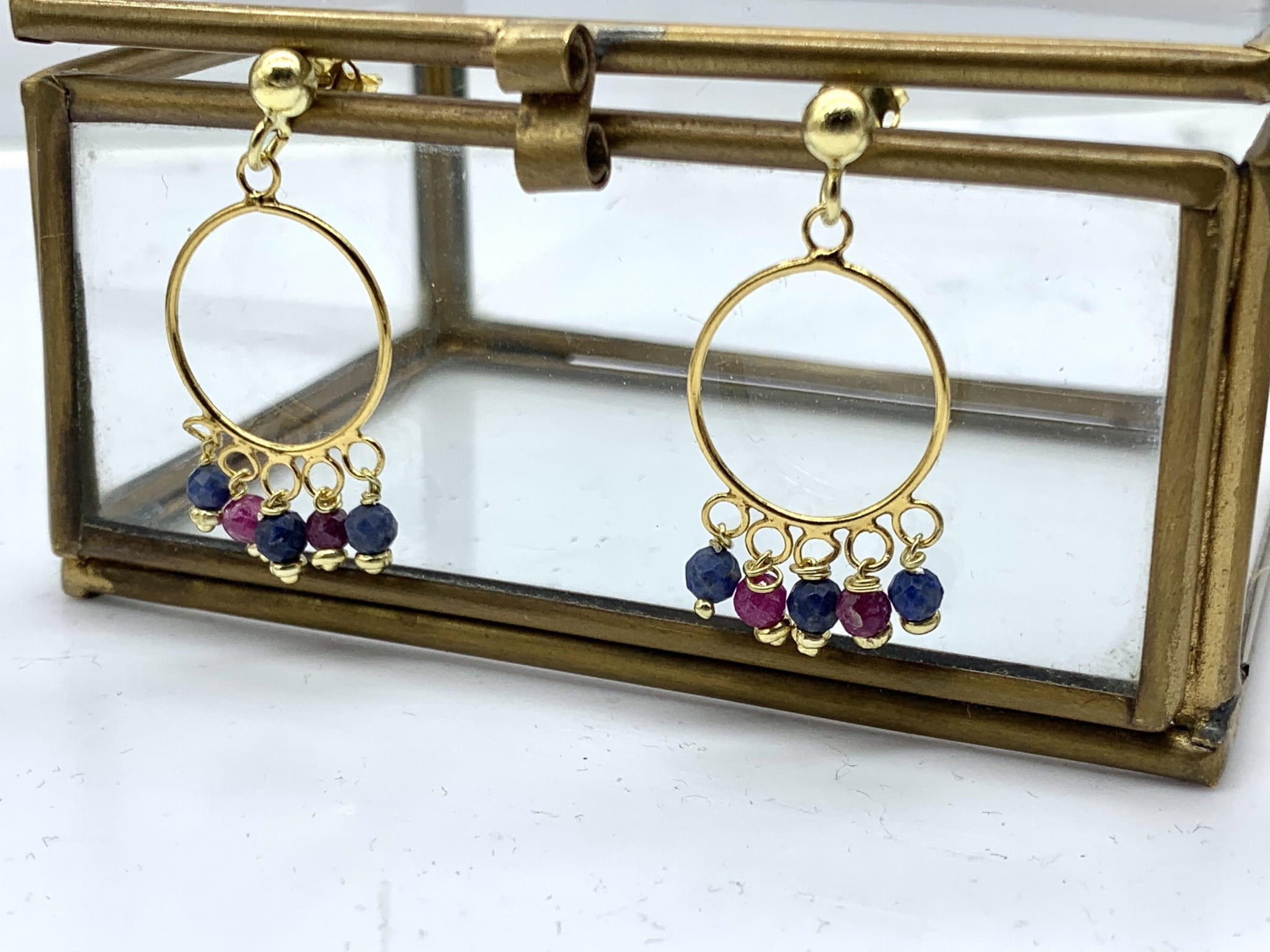 Kolczyki BOHEME koła sztyft szafiry rubiny złocone