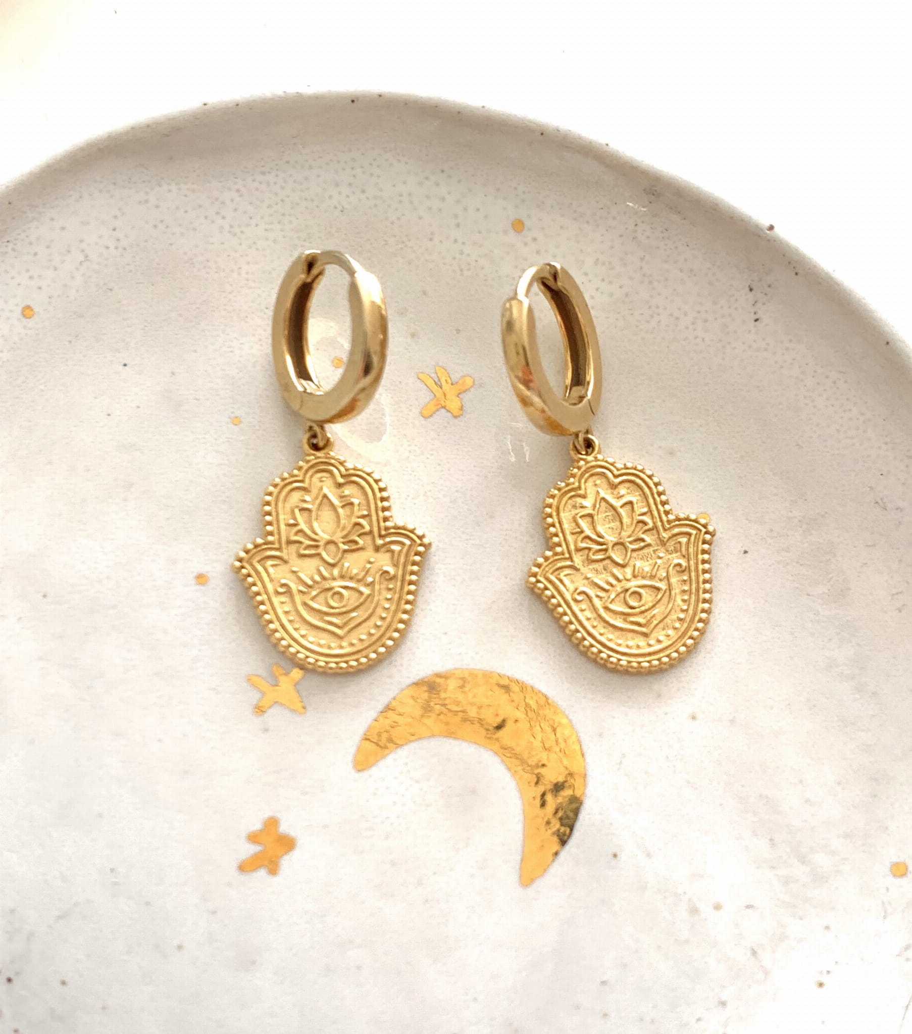 Kolczyki grube kajdanki HAMSA Dłoń Ręka Fatimy Opatrzności złocone