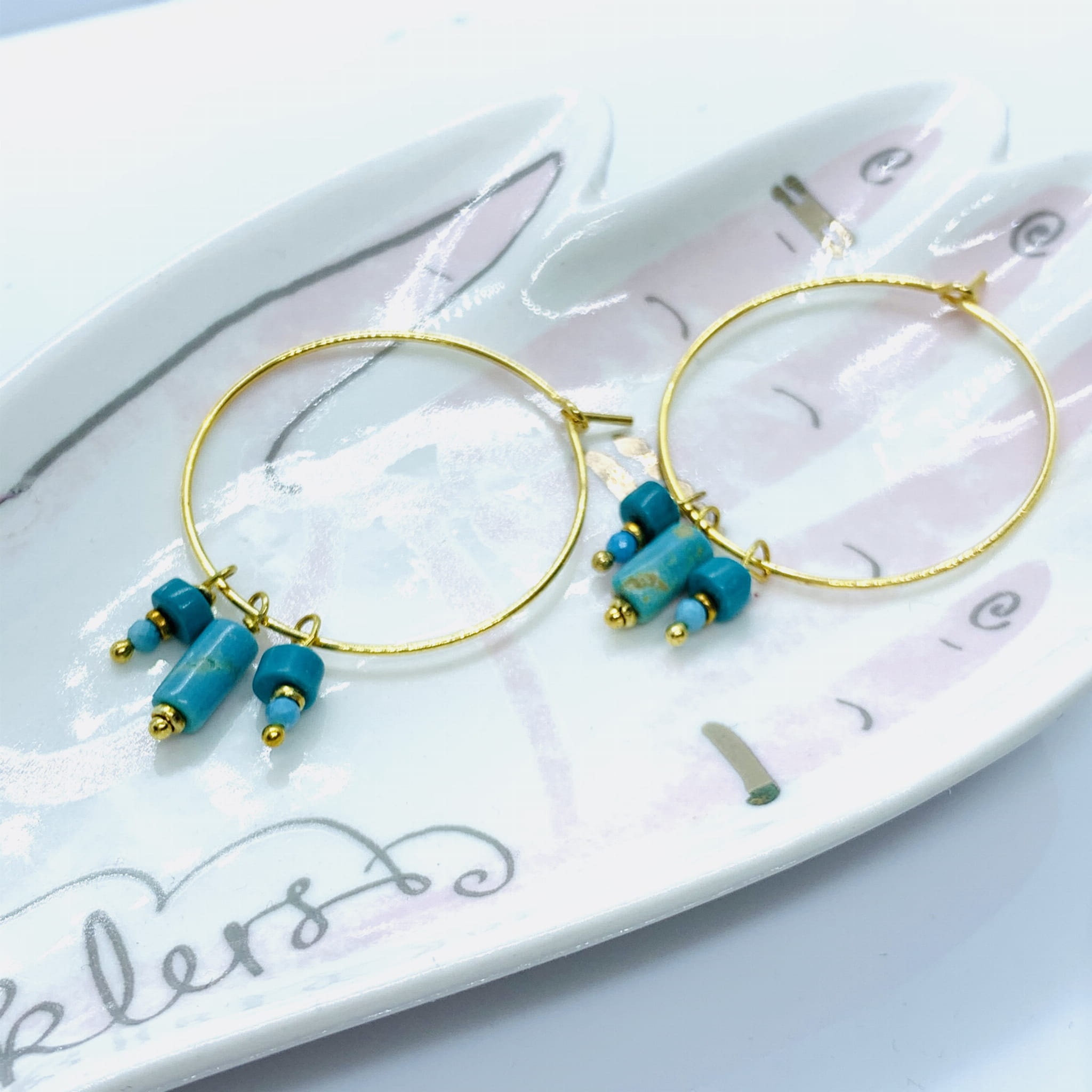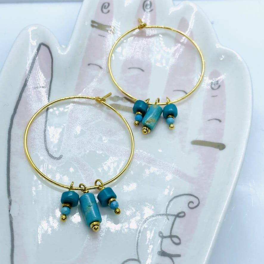 Kolczyki koła na haczyk turkus złoto