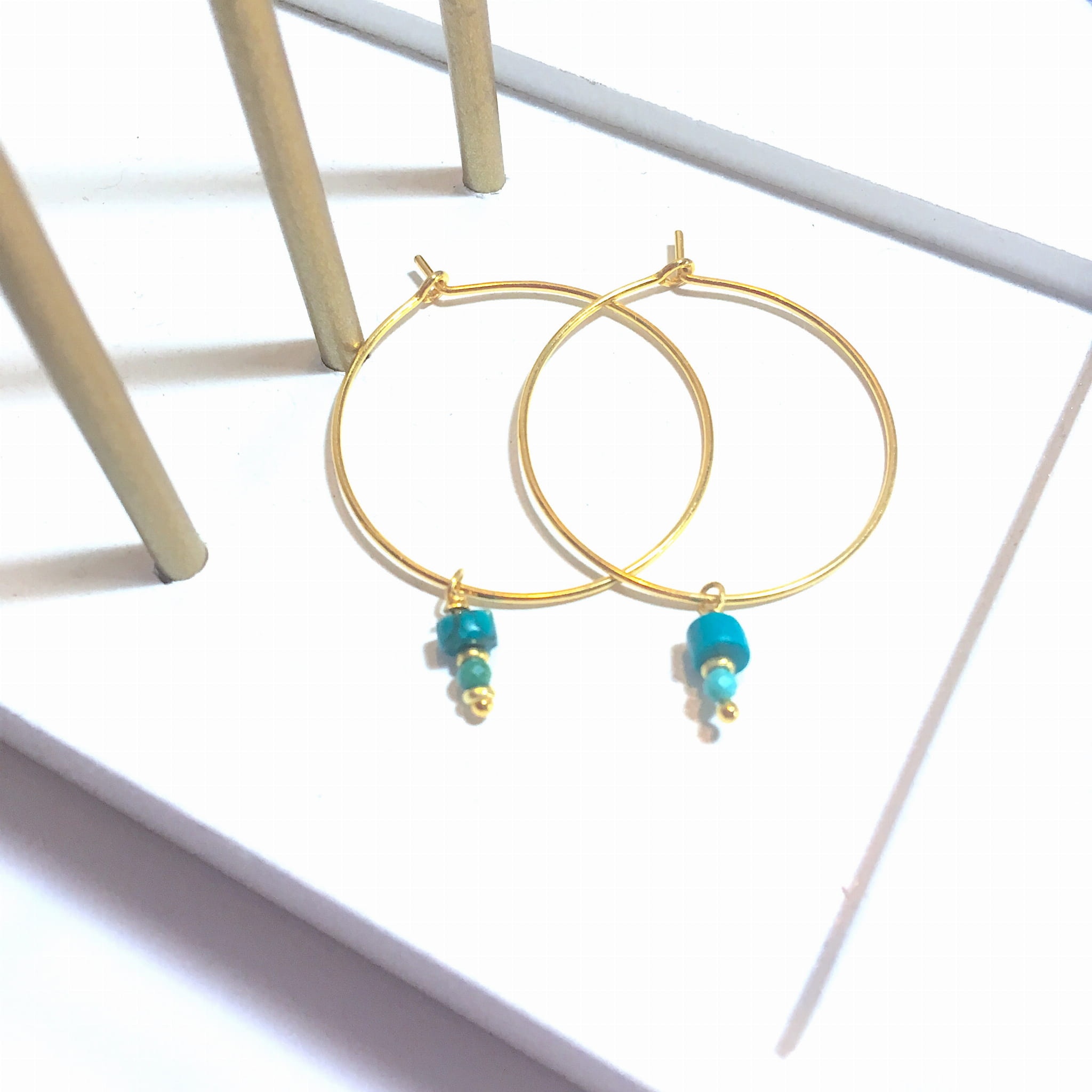 Kolczyki koła na haczyk z turkusem 29,5 mm złoto