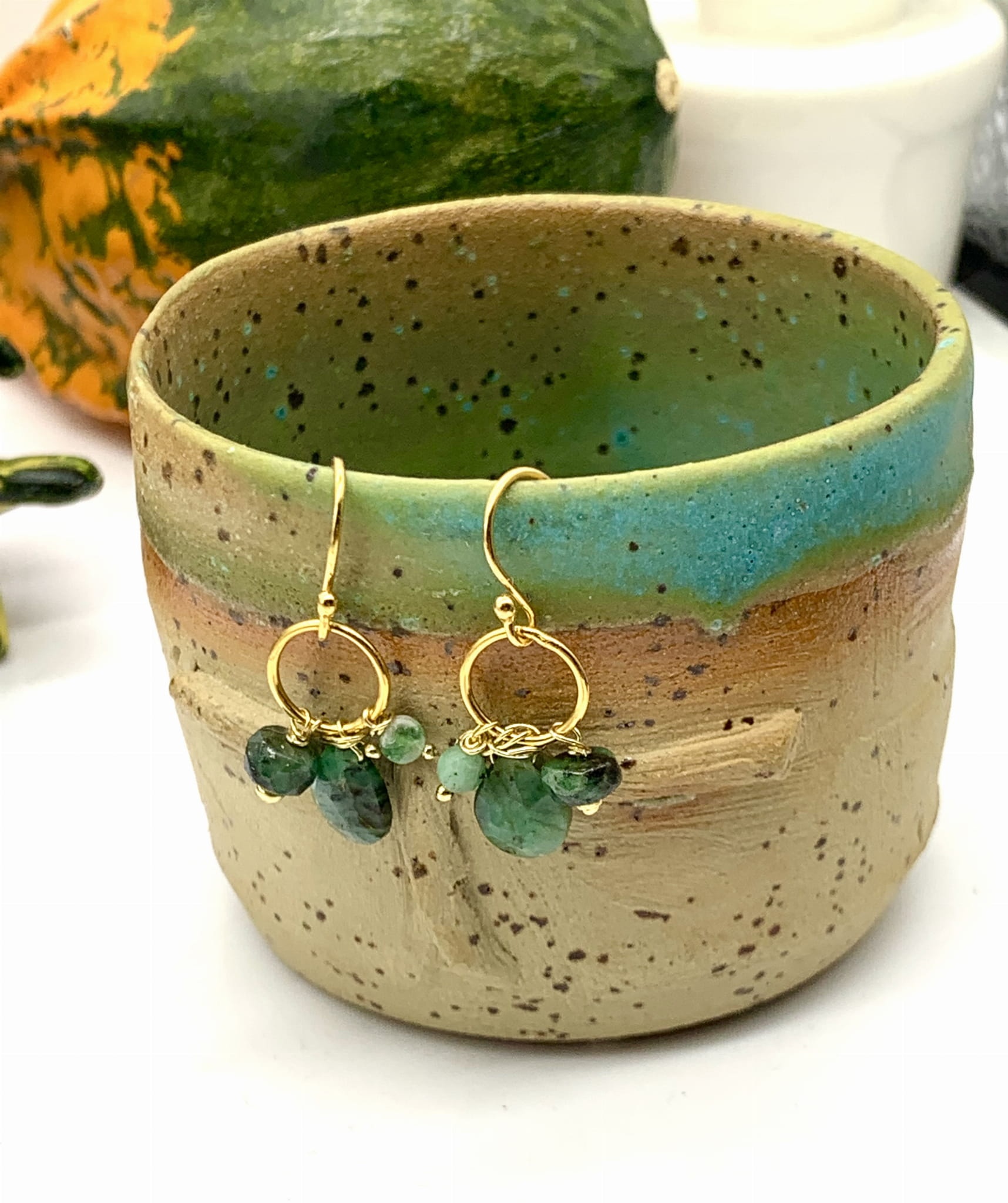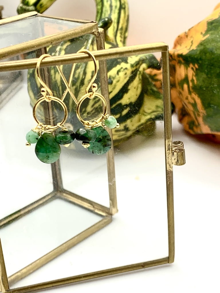 Kolczyki kółeczka bigiel szmaragdy złocone