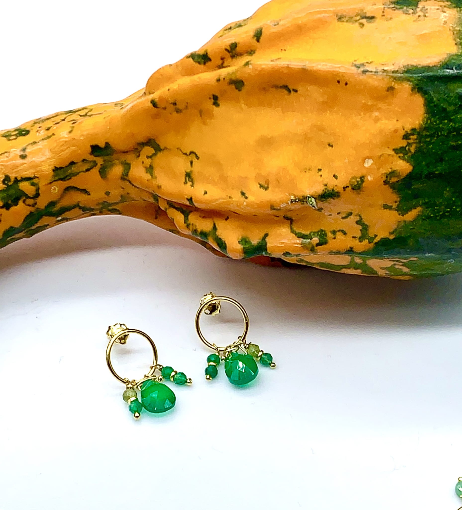 Kolczyki kółeczka sztyft kropla onyks zielony złocone