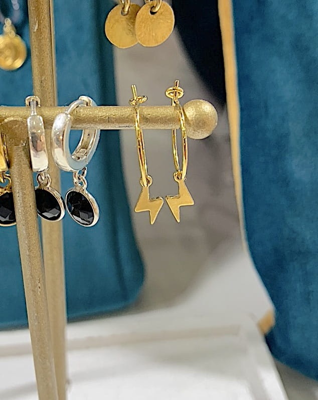 Kolczyki koła ze zdejmowani zawieszkami. Zawieszka Błyskawica . Możliwość wymiany zawieszek.