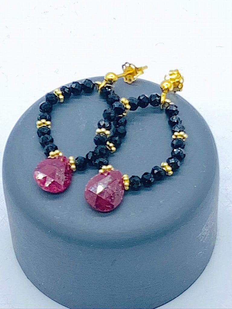 Kamienie:czarny turmalin, rubin