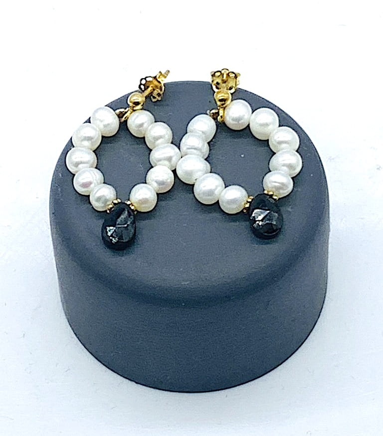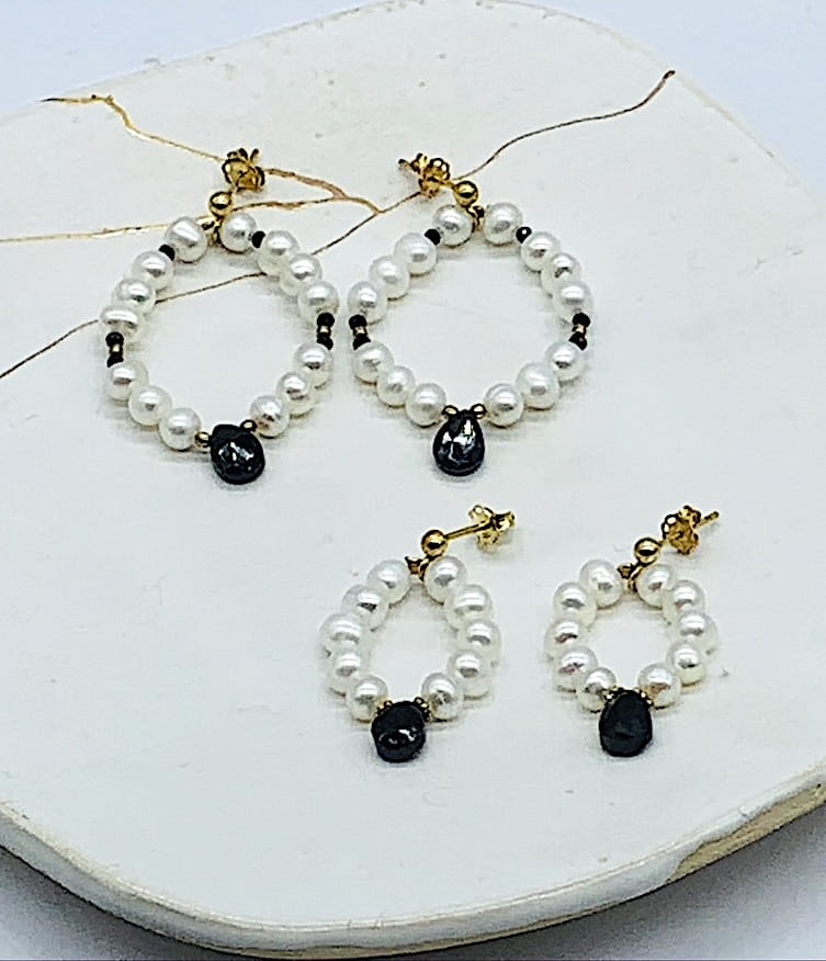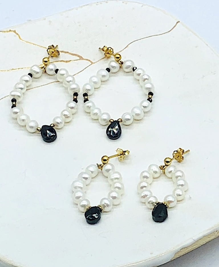 Kolczyki perły spinel wianuszki sztyft małe złocone