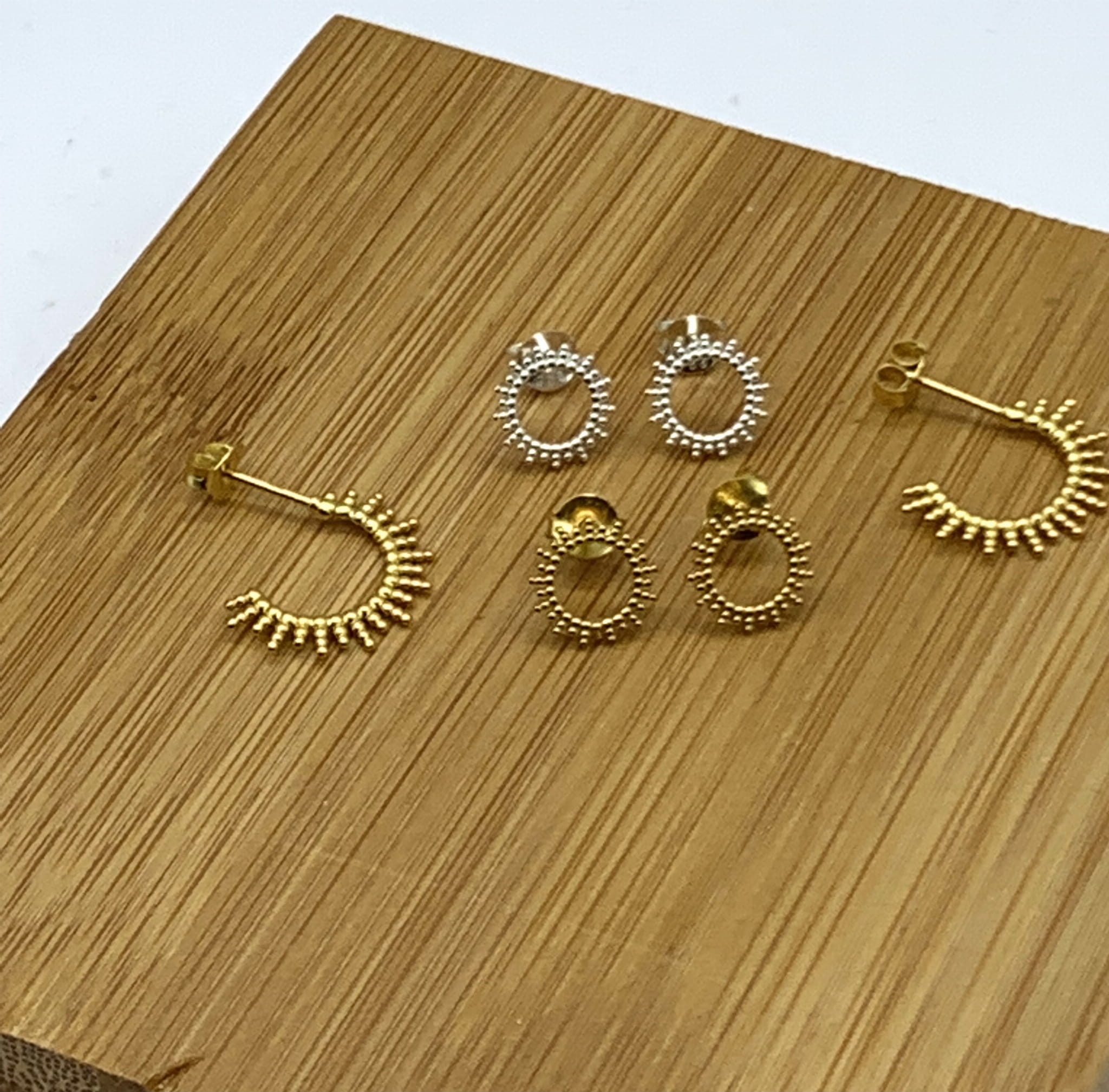 Kolczyki sztyft Słońce półkole srebro złocone