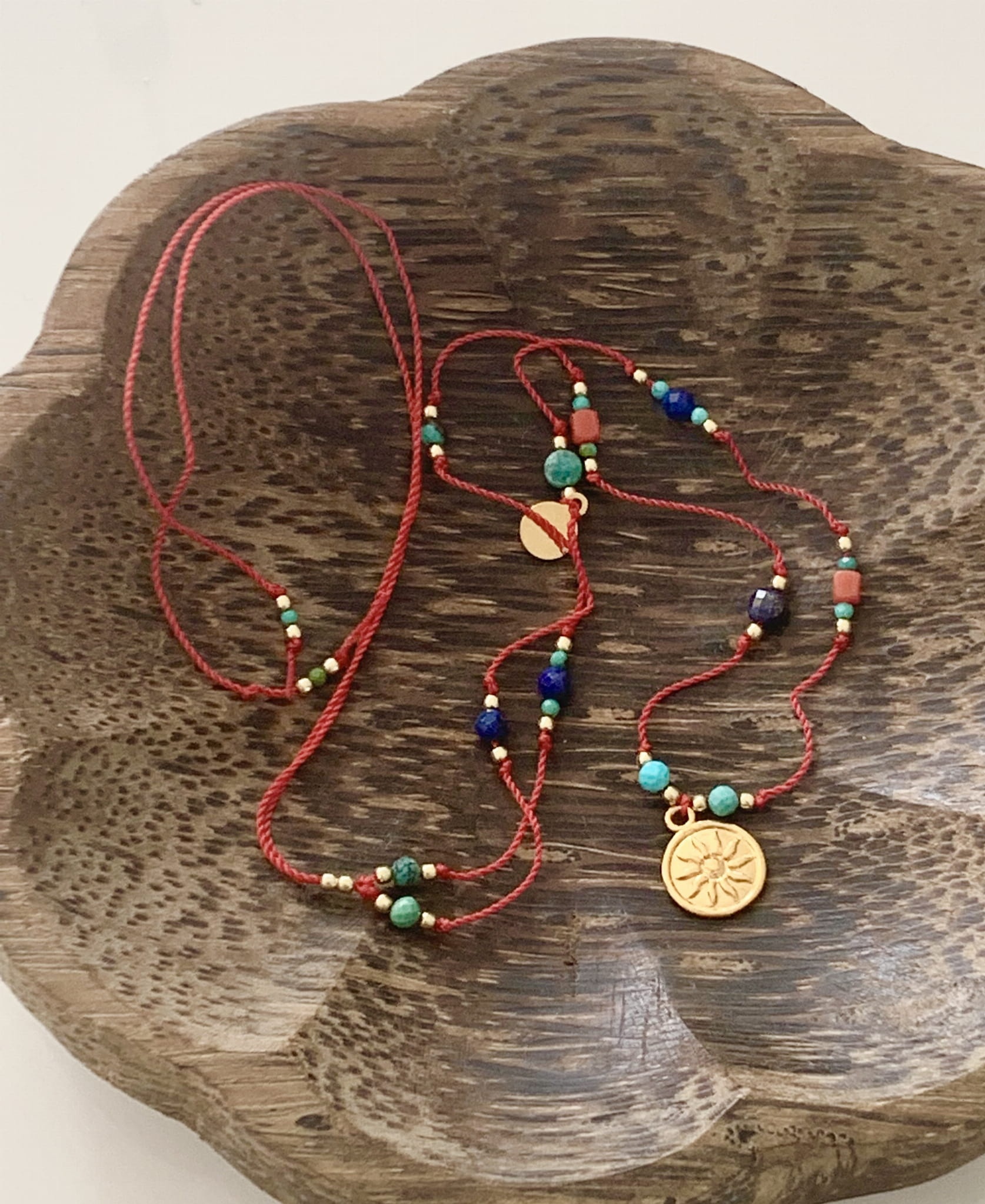 Naszyjnik Naturalność Słońce turkus koral lapis czerwony złocony